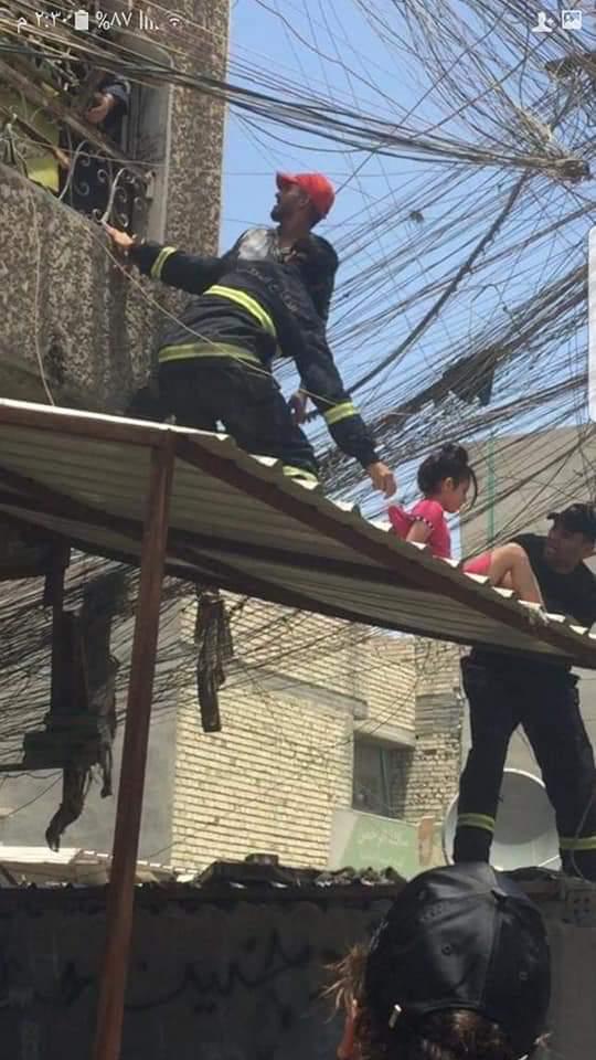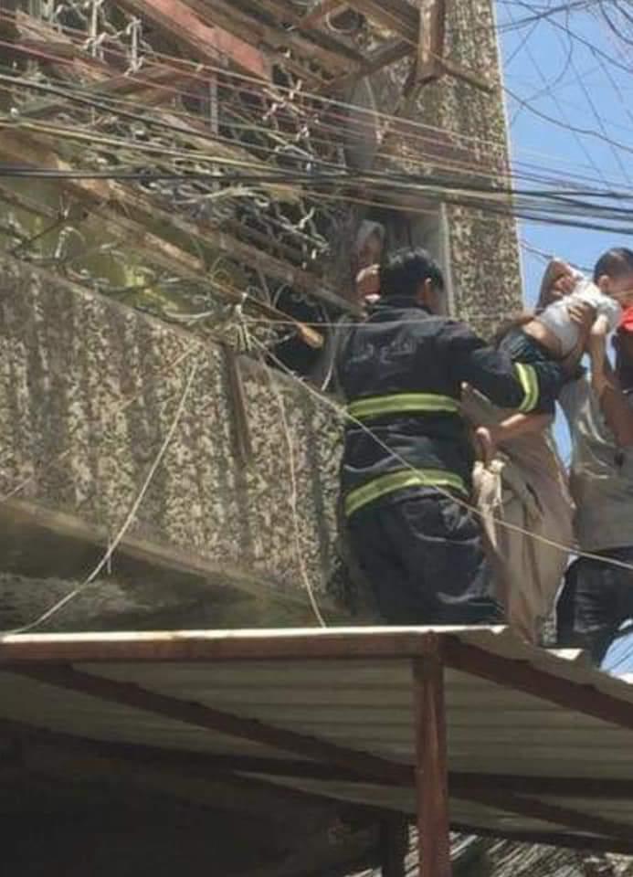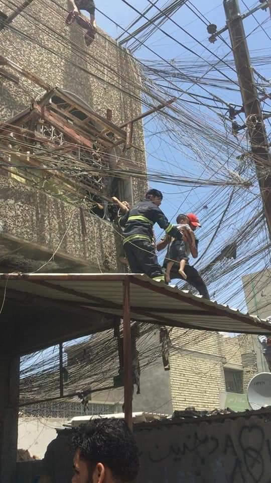 بالصور.. الدفاع المدني ينفذ عملية بطولية لانقاذ عائلة من حريق في عمارة شرقي بغداد