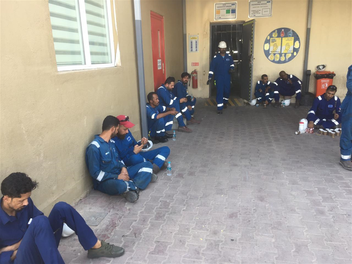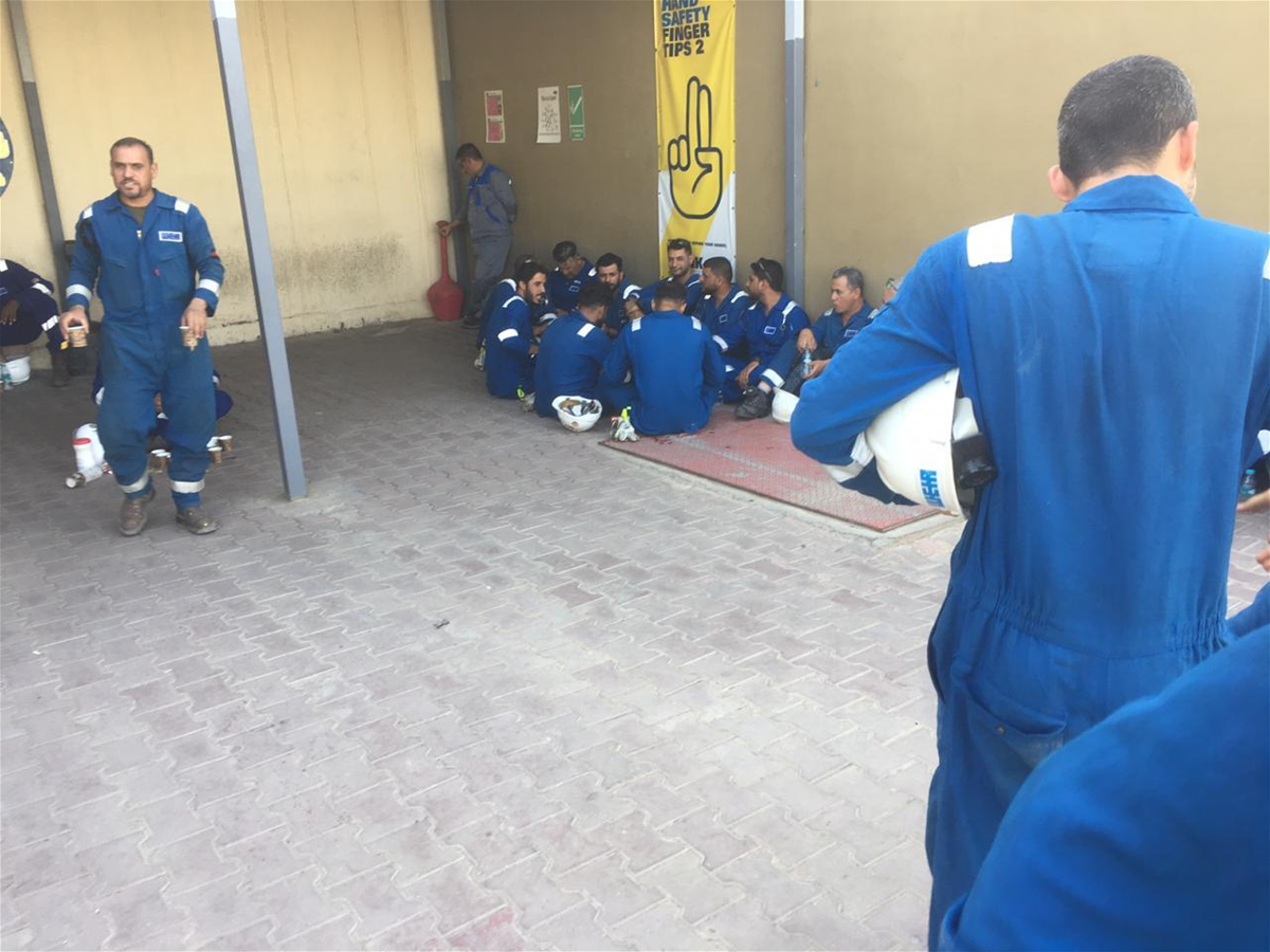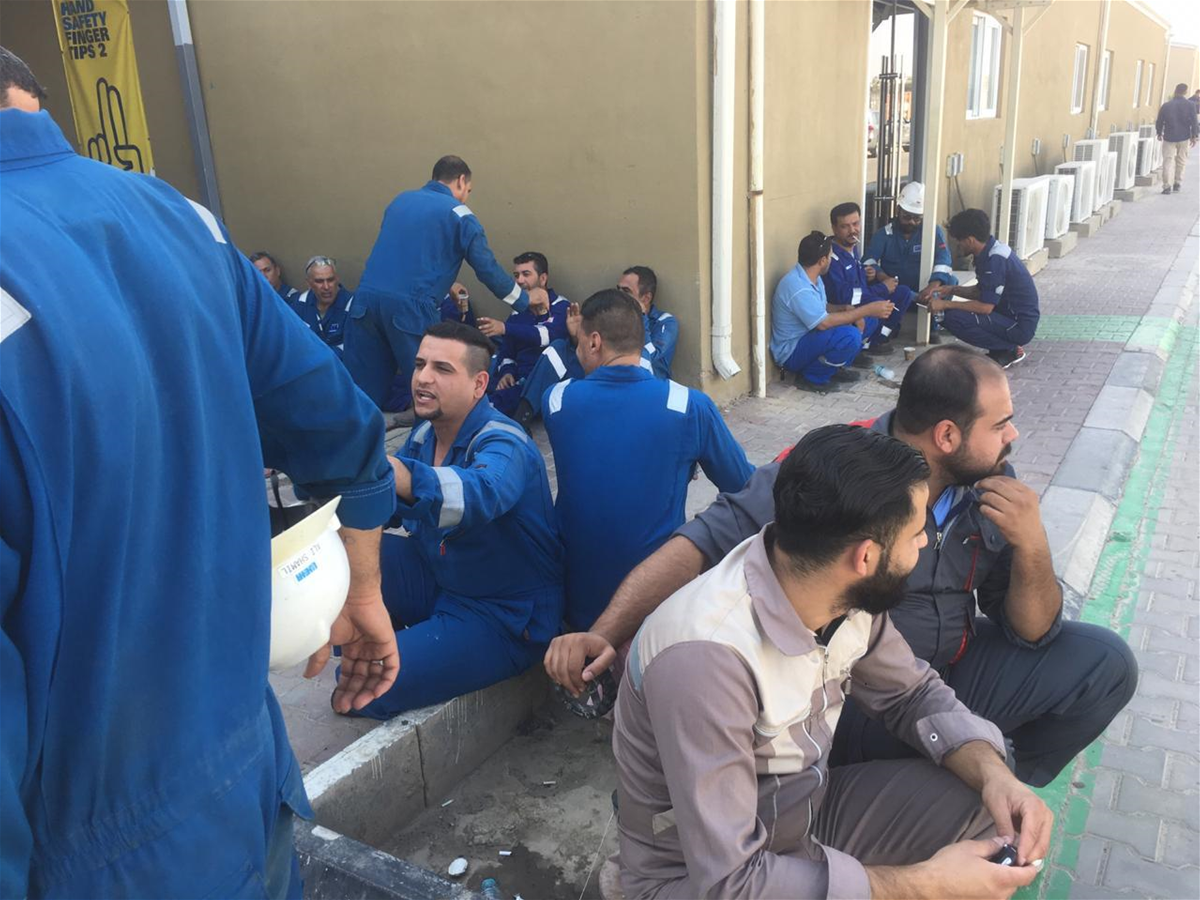 بالصور.. عمال عراقيون ينظمون اضرابا بالبصرة بسبب مدير برازيلي