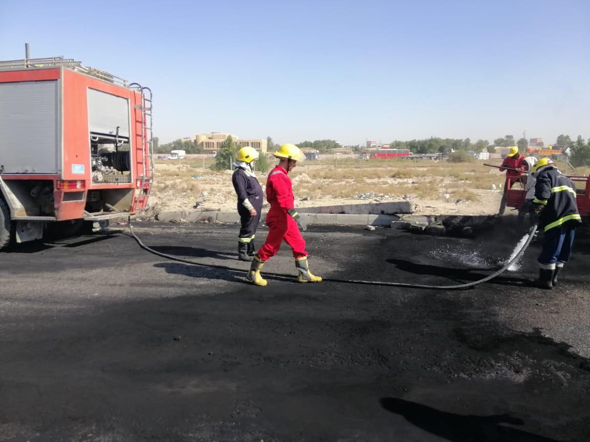 تمكنت فرق الدفاع المدني، الثلاثاء، من اخماد الحرائق التي اندلعت في الاطارات على الطريق المؤدي الى