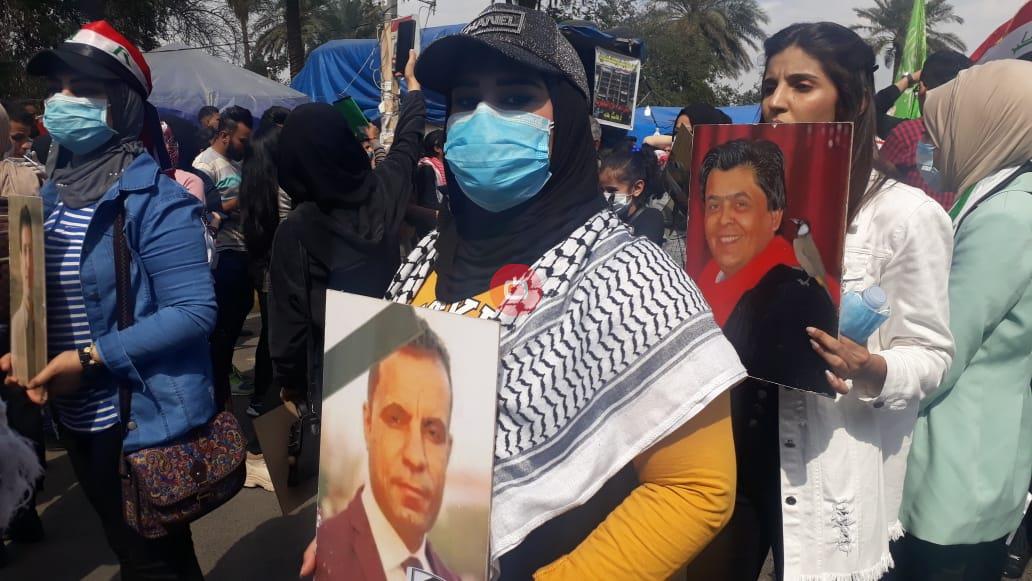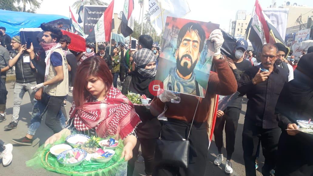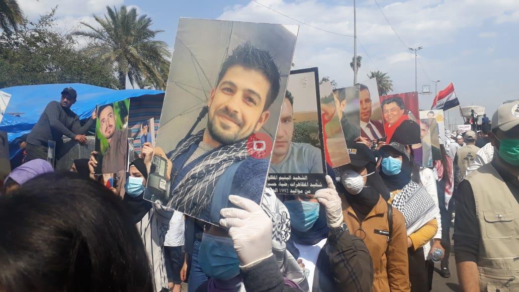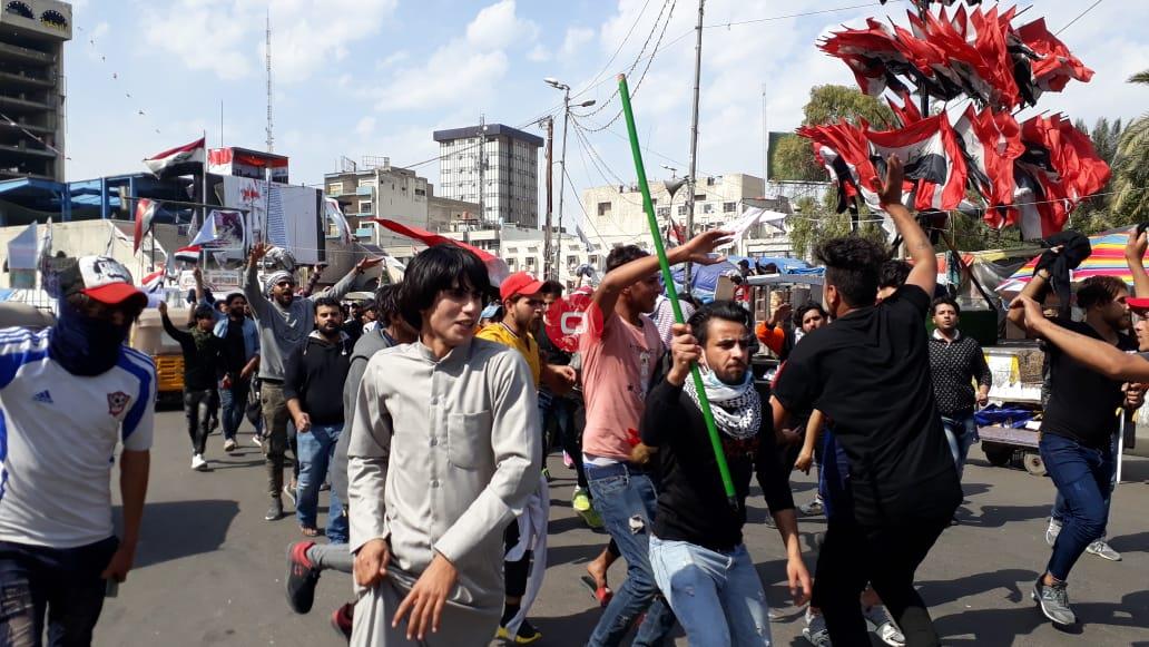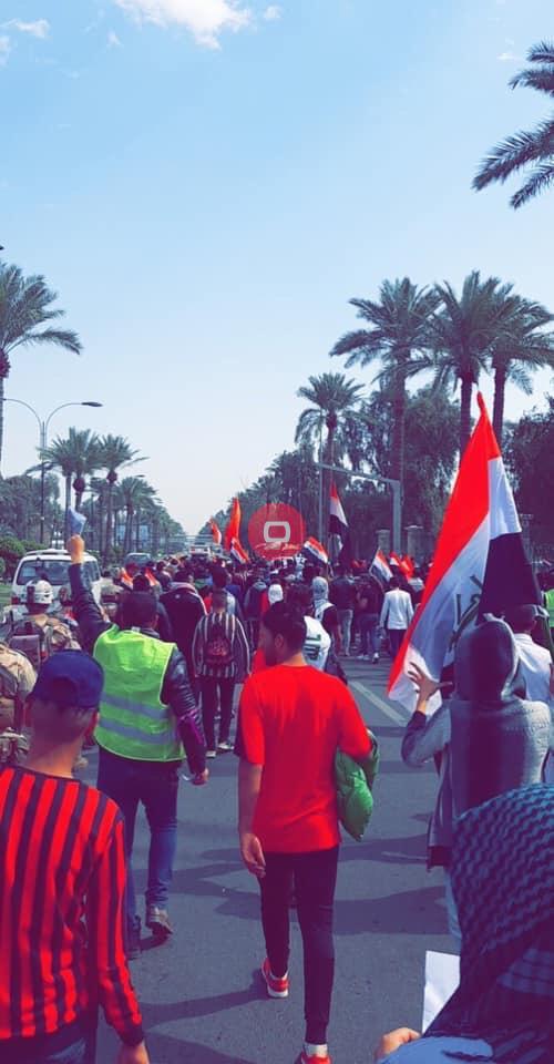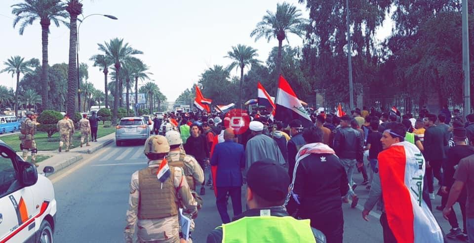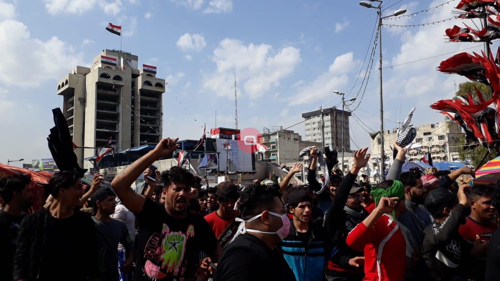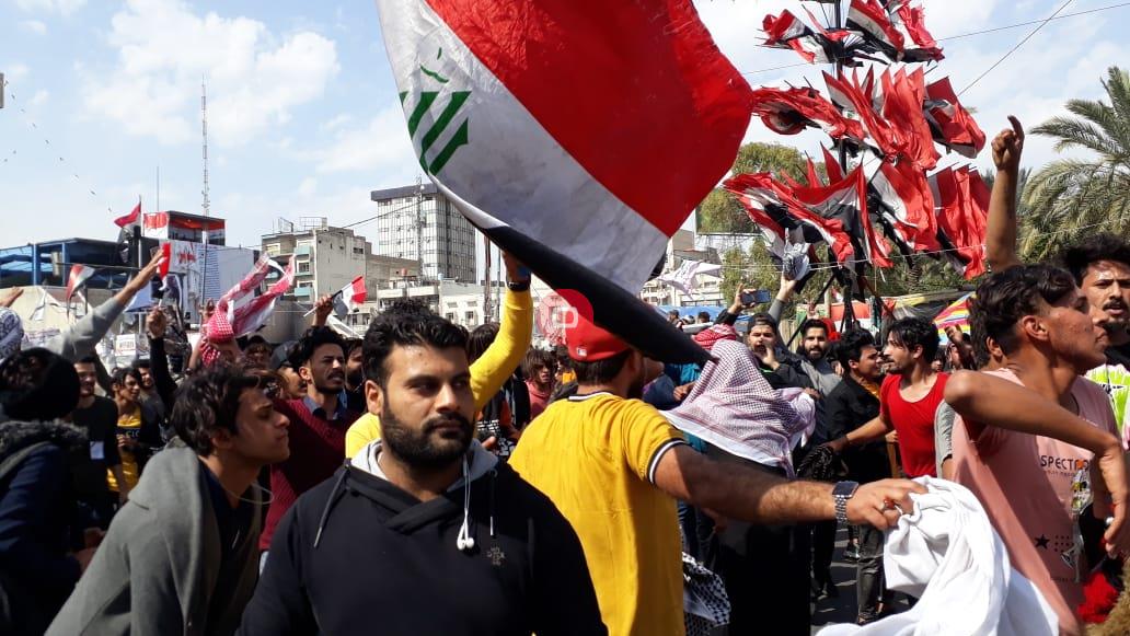 فيما رفع المتظاهرون عدد من اللافتات والاعلام العراقية اضافة الى صور الشهداء الذين قتلوا خلال التظاهرات.