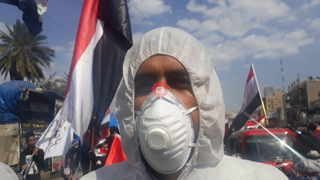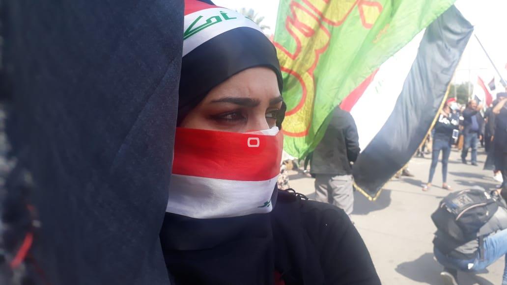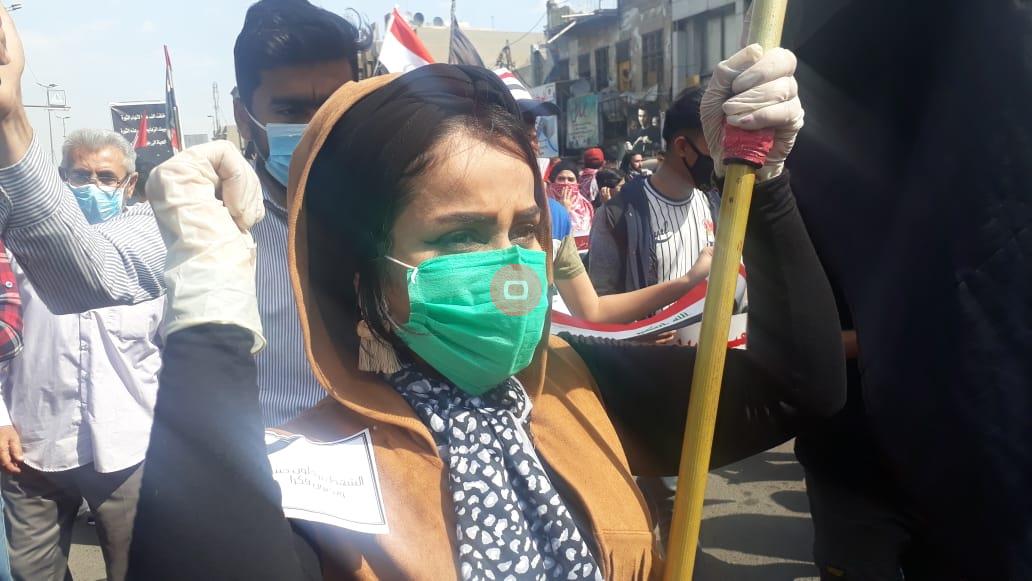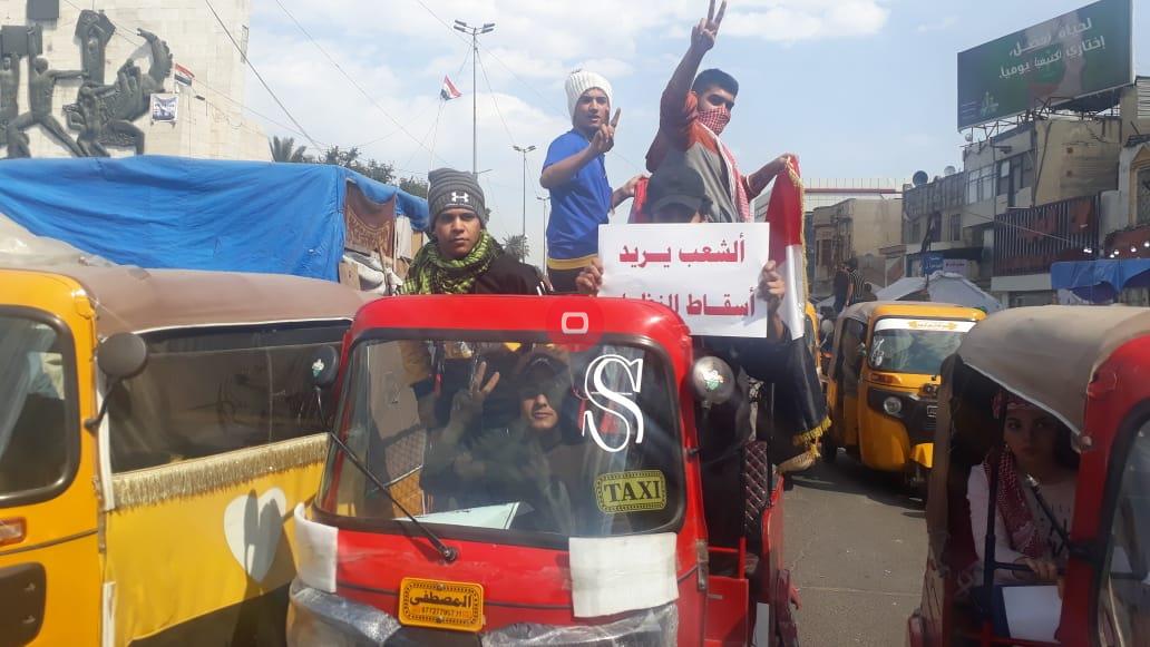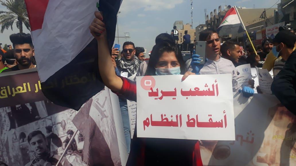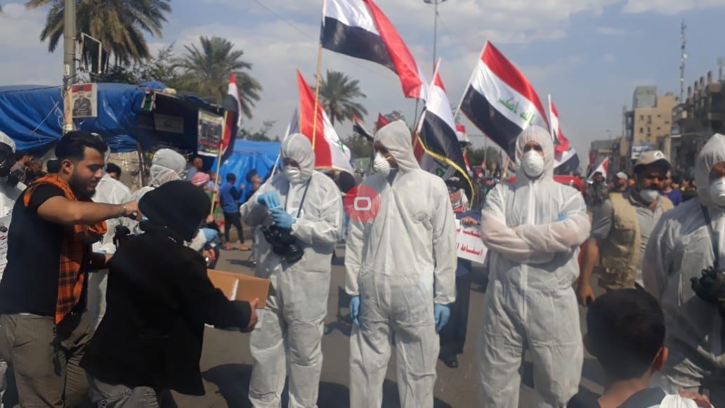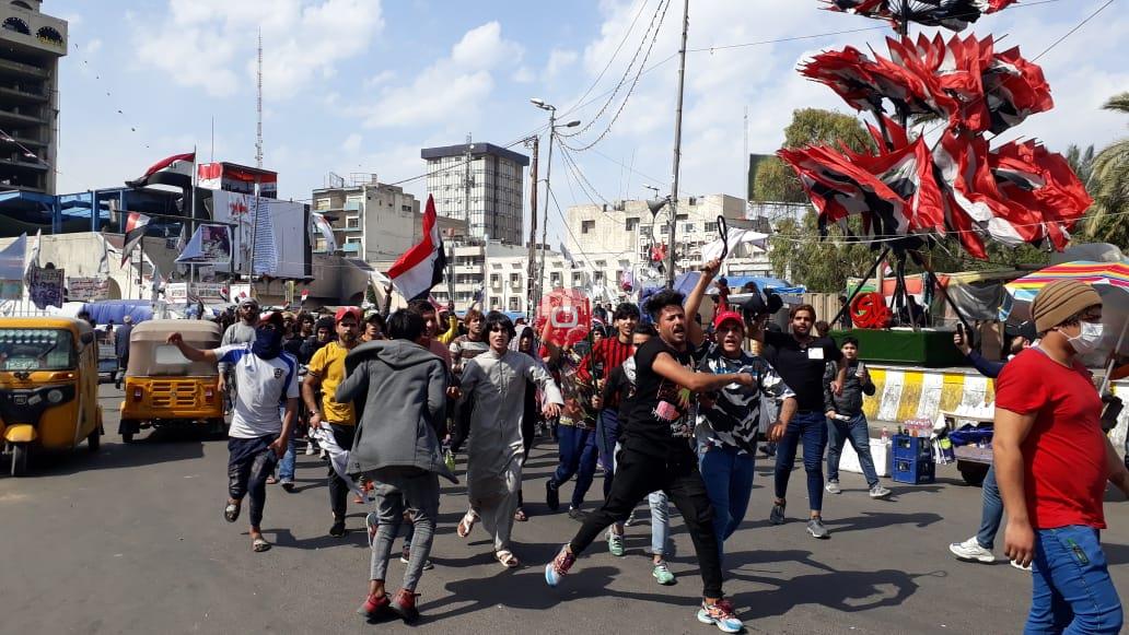 فيما رفع المتظاهرون عدد من اللافتات والاعلام العراقية اضافة الى صور الشهداء الذين قتلوا خلال التظاهرات.