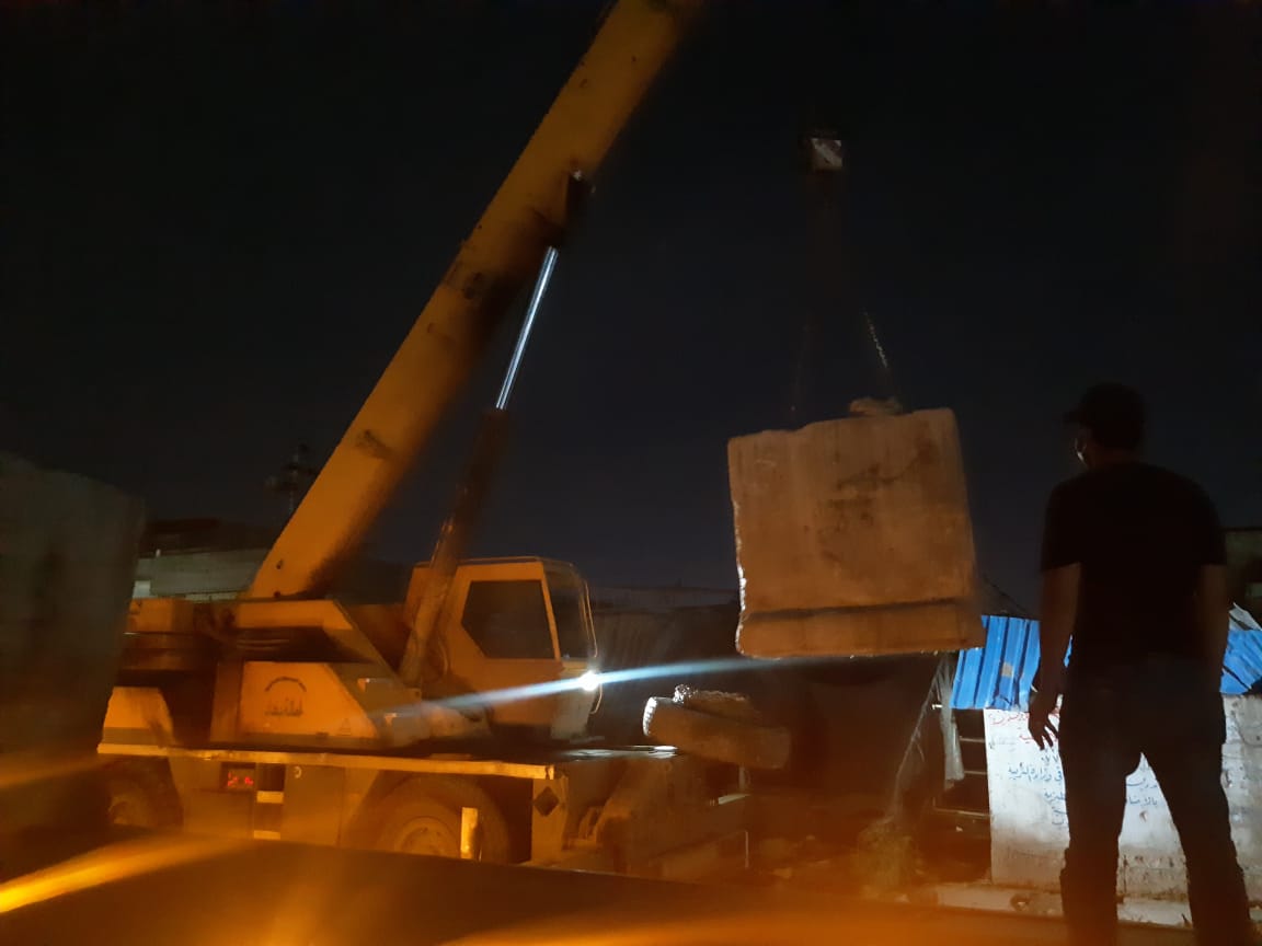 رفع الكتل الكونكريتية المحيطة بمحطة "كهرباء المثنى"شرق بغداد