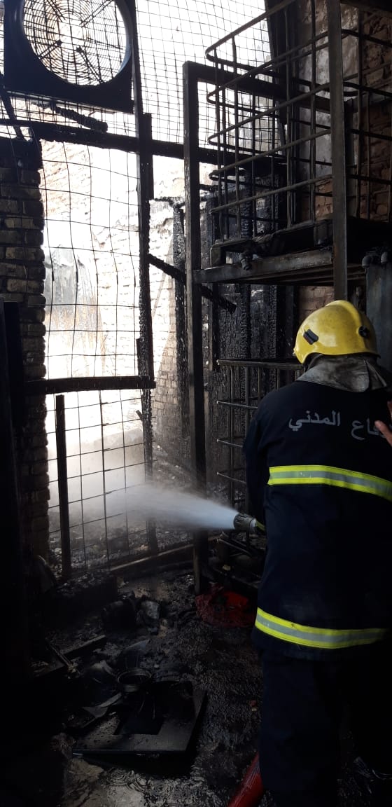 الدفاع المدني يخمد حريقا اندلع في بناية مكونة من طابقين في الوزيرية ببغداد