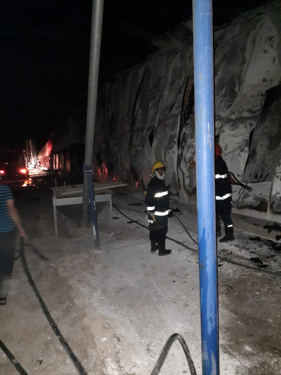 بطول ١٠٠ متر وعرض ١٧ متر مصنوع من مادة السندويج بنل سريع الاشتعال".