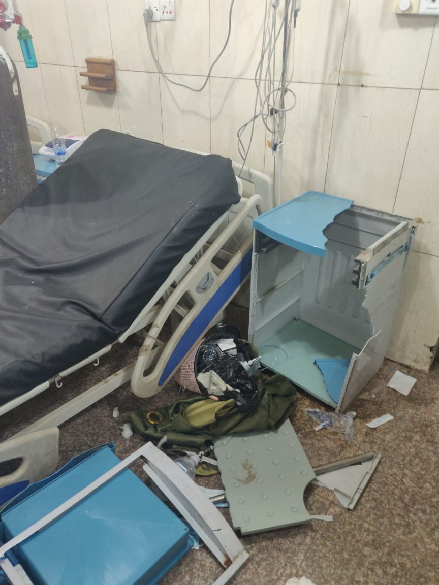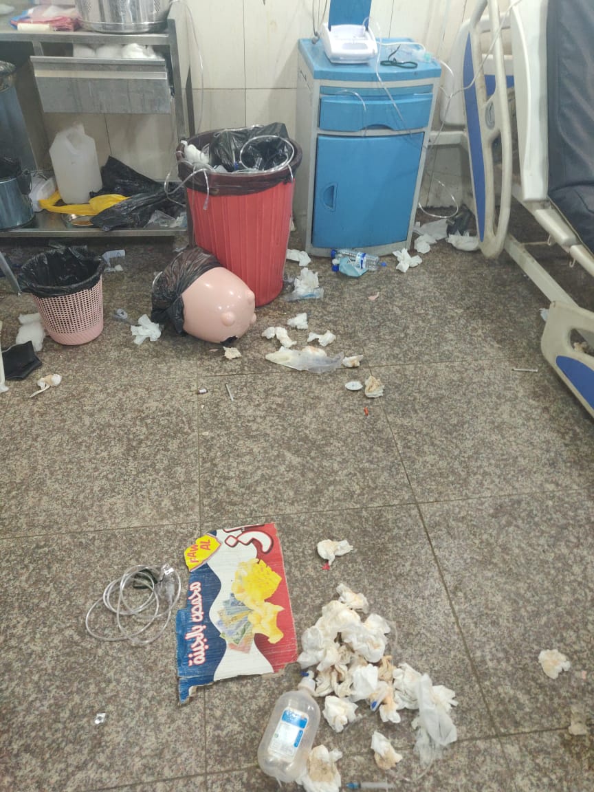 تعديا جديدا واضحا اسفر عنه تعرض الكوادر الطبية والصحية الى الاعتداء وتحطيم عدد من الاجهزة الطبية و الاسرة من قبل ذوي احد المرضى المتوفين".