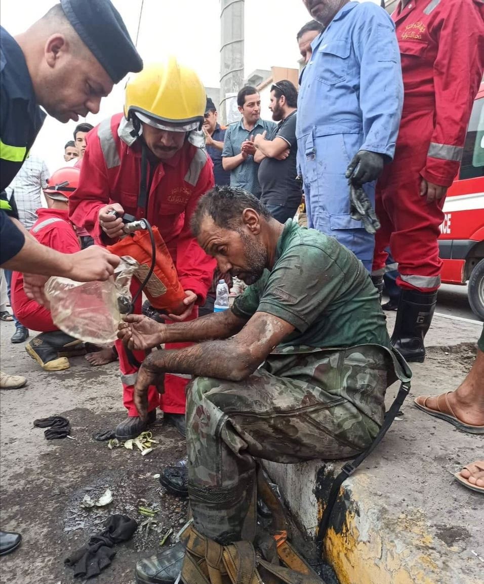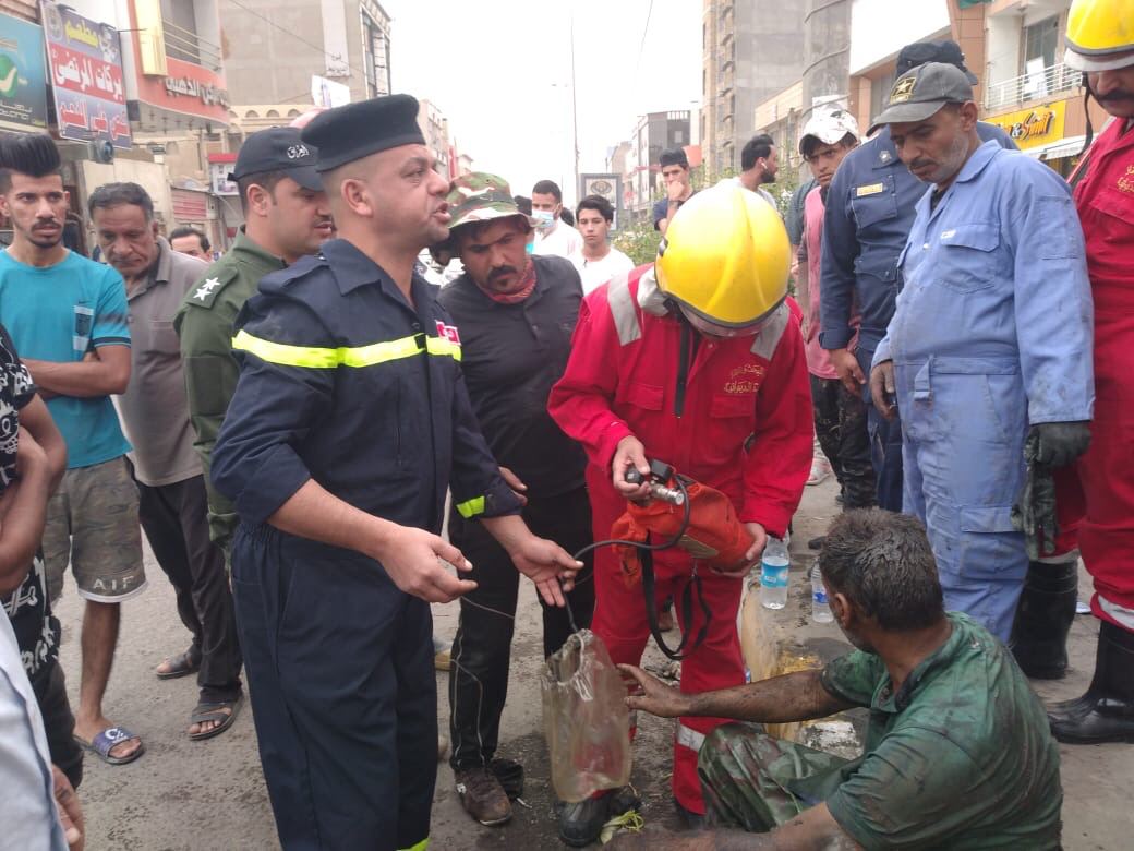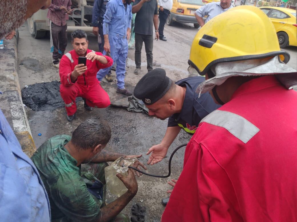 تمكنت من اخراج عاملين بعد ان فقدا الوعي داخل فتحة مجاري بعد استنشاقهم غاز الميثان الخانق في منطقة
