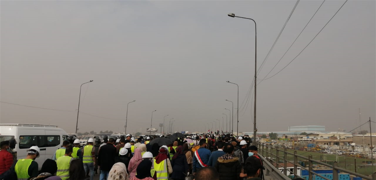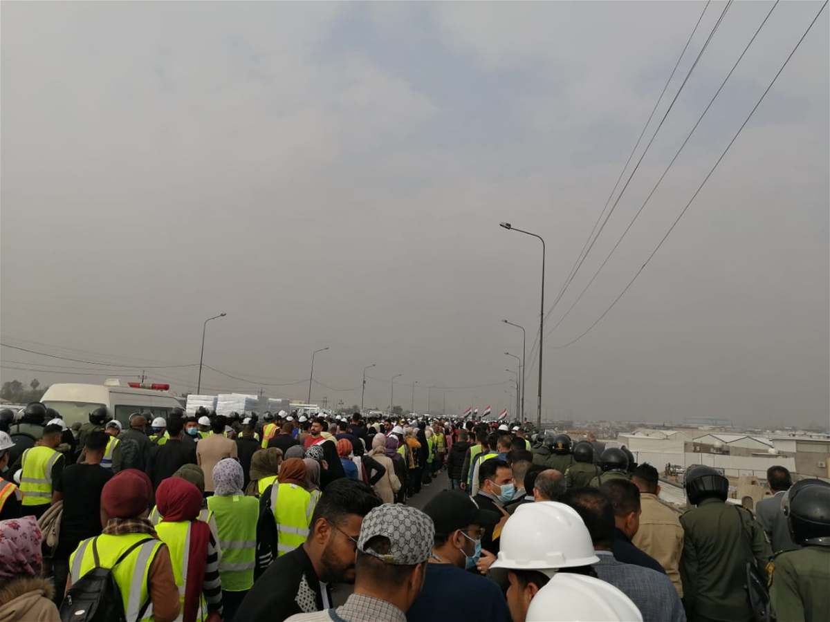 باتجاه وزارة المالية، وهناك انتشار امني كثيف من قبل قوات حفظ القانون ومكافحة الشغب.