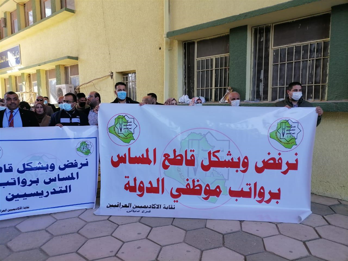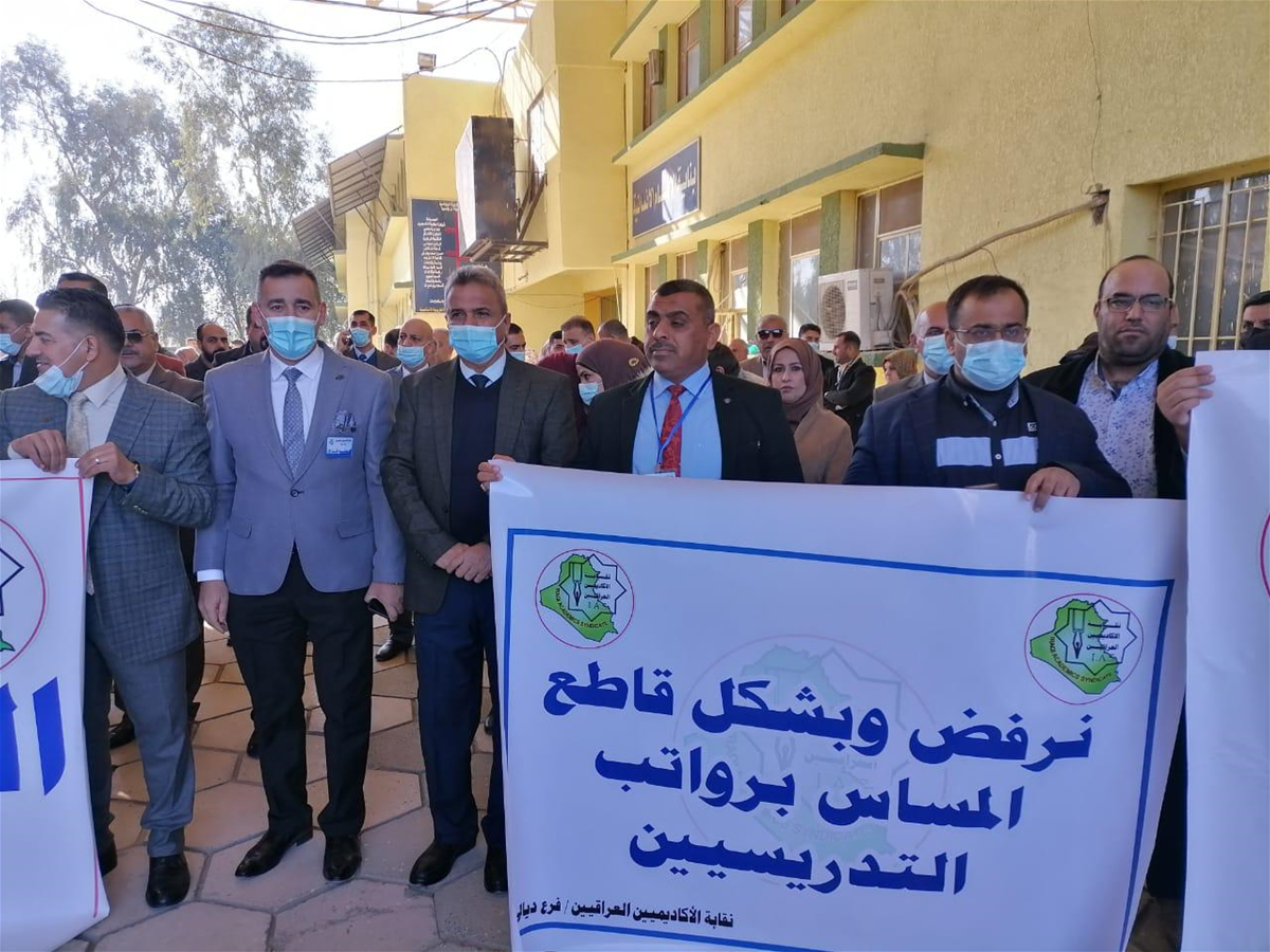 تظاهرات لأساتذة جامعات في ديالى احتجاجاً على "تقليص رواتبهم" في الموازنة