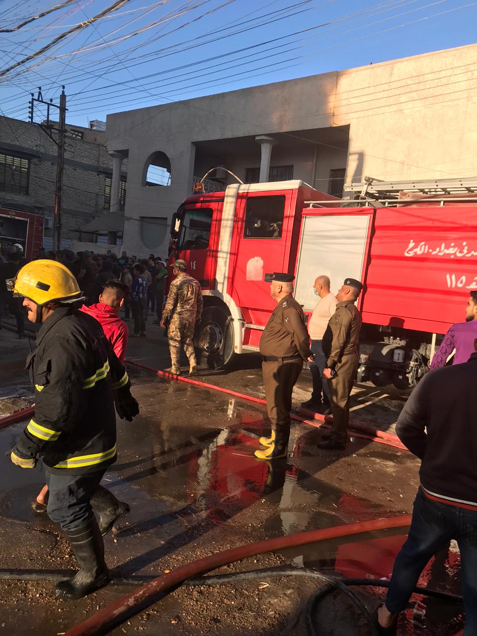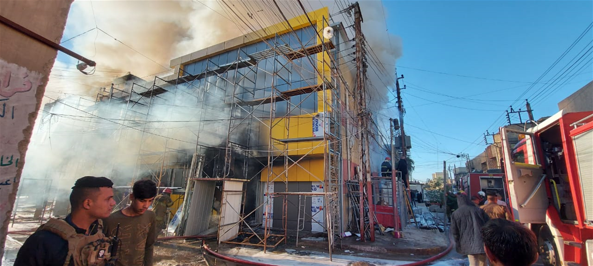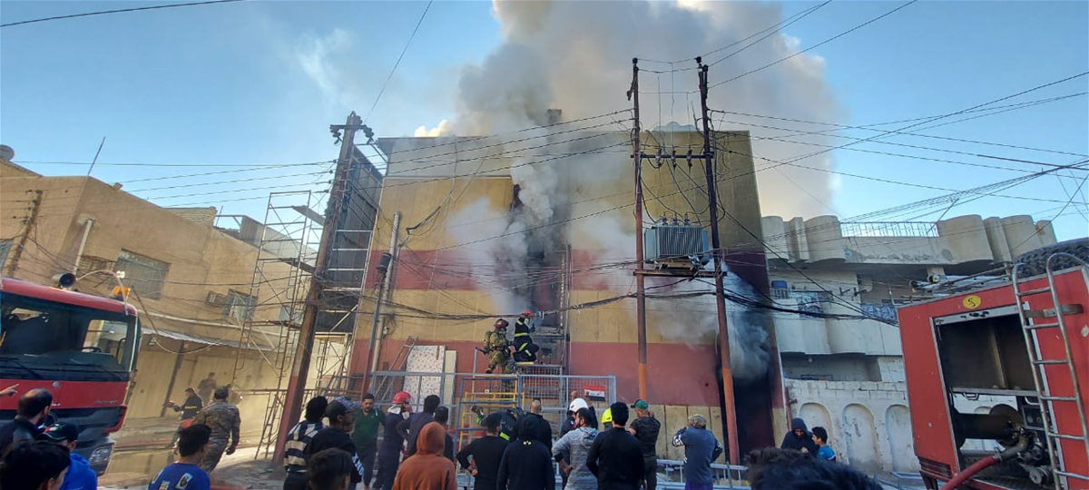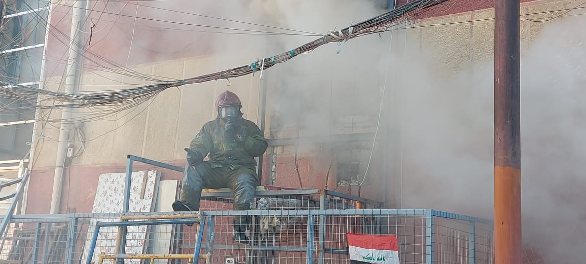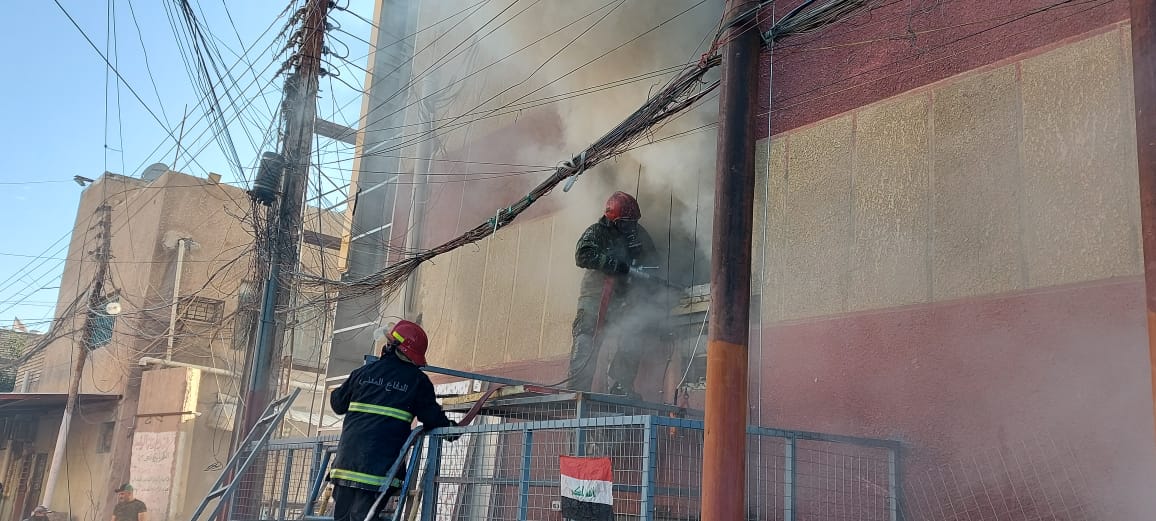 فرق الدفاع المدني تكافح حريقا وسط بغداد