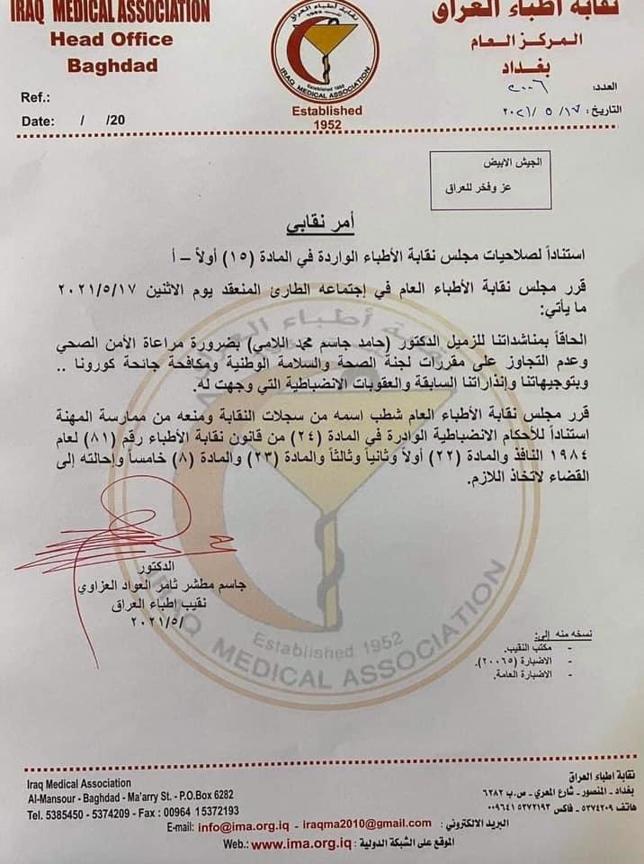 نقابة الأطباء تقرر منع "حامد اللامي" من ممارسة المهنة (وثيقة)