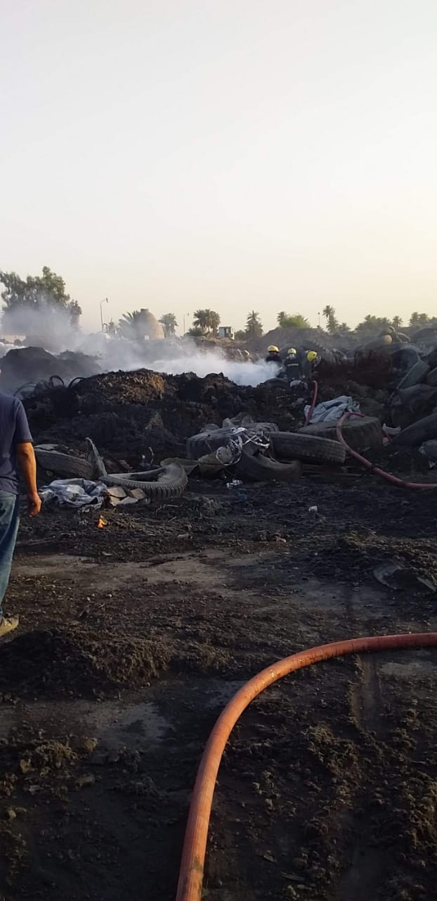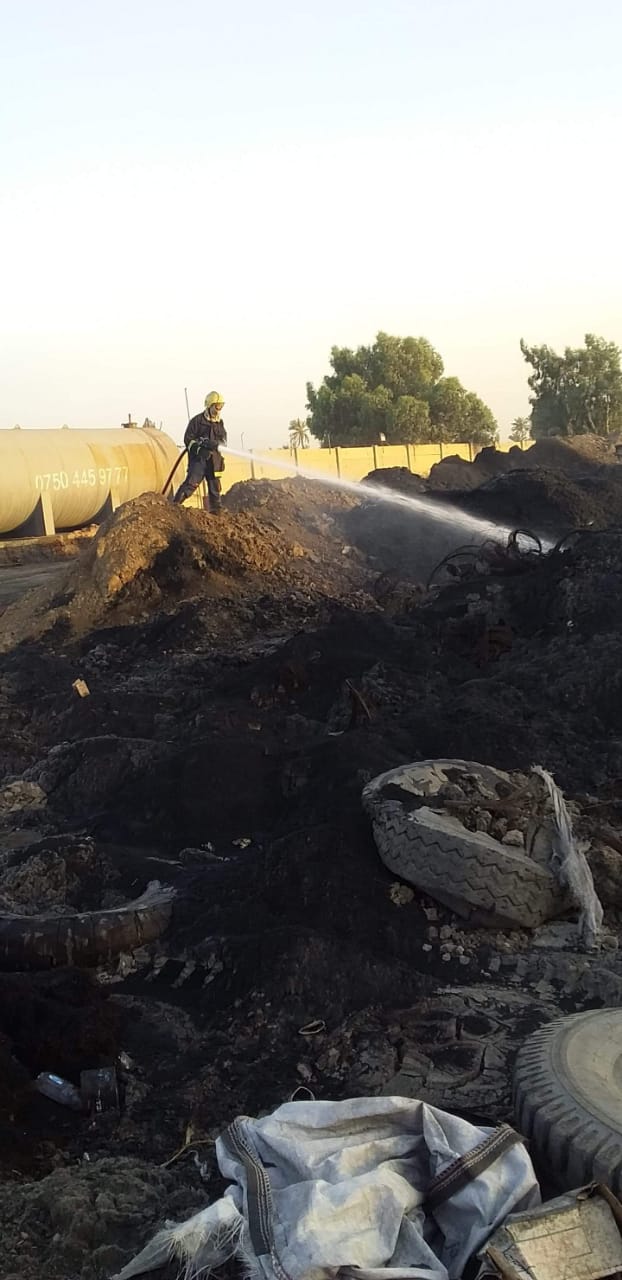 الدفاع المدني تسيطر على حادث حريق في معمل اطارات الديوانية (صور)