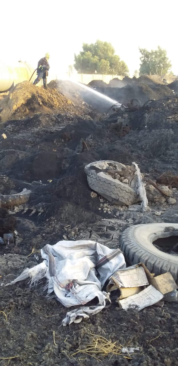 ، اليوم الجمعة، السيطرة على حادث حريق في معمل اطارات