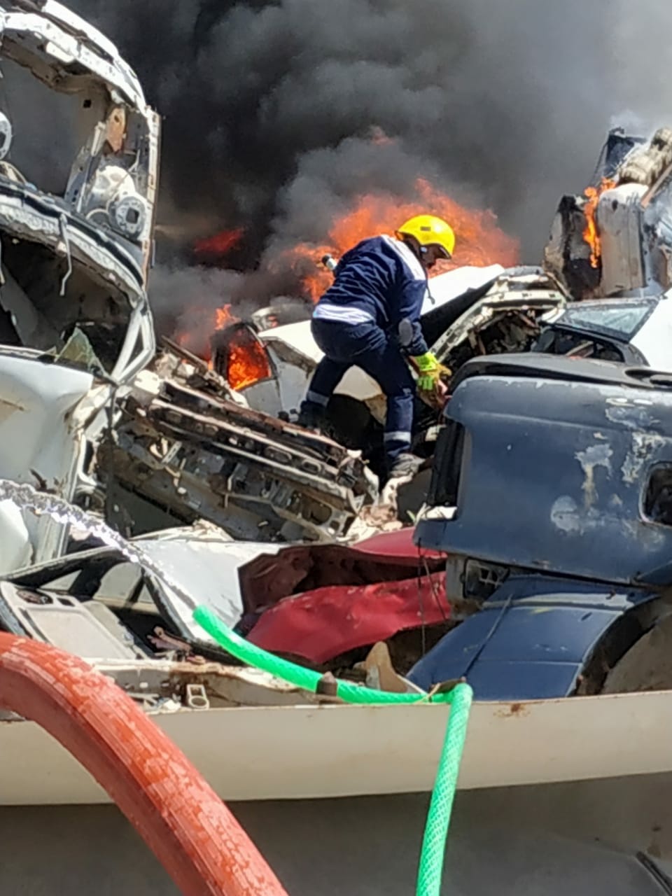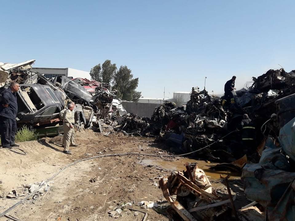 ، تمكنت مفارز الدفاع المدني من إخماد حادث حريق اندلع بمقبرة للعجلات القديمة ( سكراب ) على طريق حله - نجف بهمة عالية وبوقت قياسي والحد من توسع النيران وانتشارها".