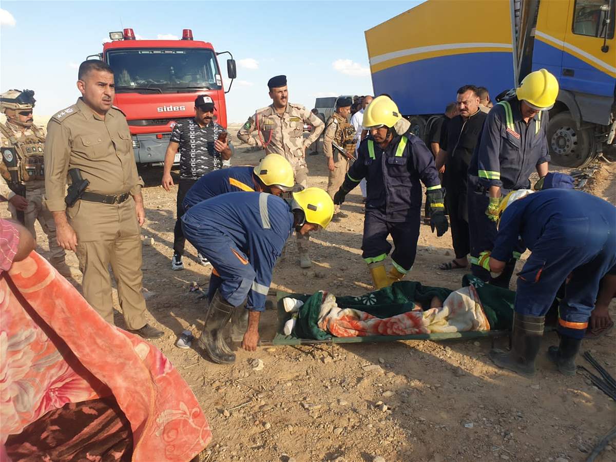 بالصور.. انتشال 8 جثث من بين حطام عجلتين في الانبار