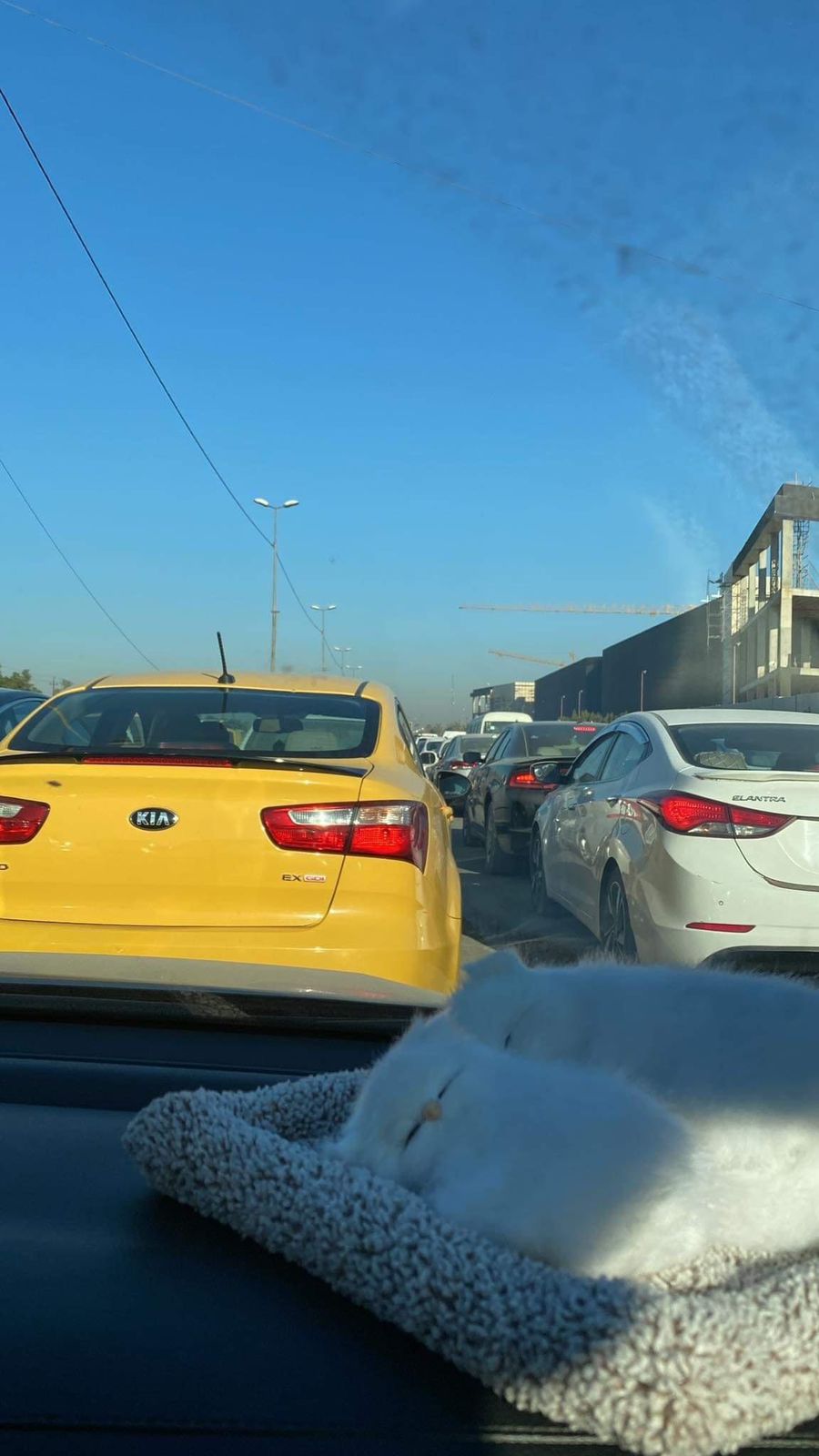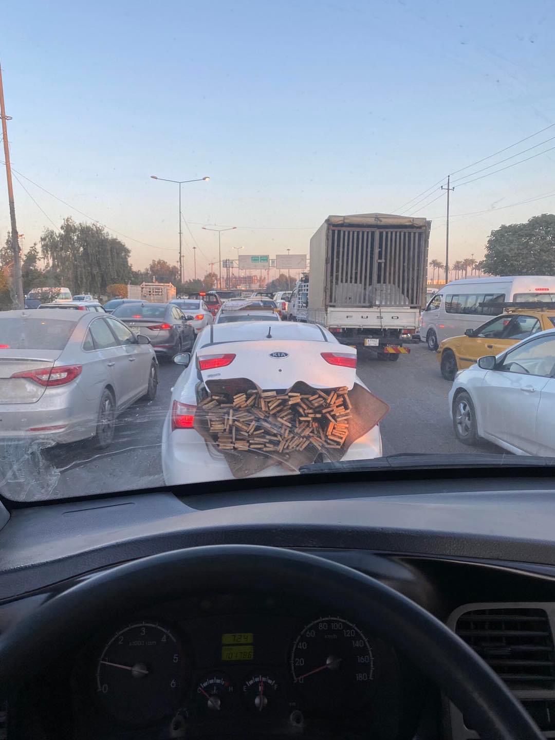 ، حيث وصلت طوابير العجلات لغاية جسر الجمعية.