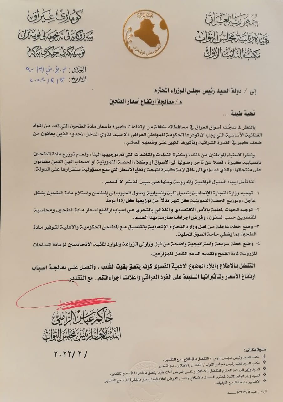 بالوثيقة.. الزاملي يدعو الحكومة للوقوف على اسباب ارتفاع الاسعار ومحاسبة المتلاعبين