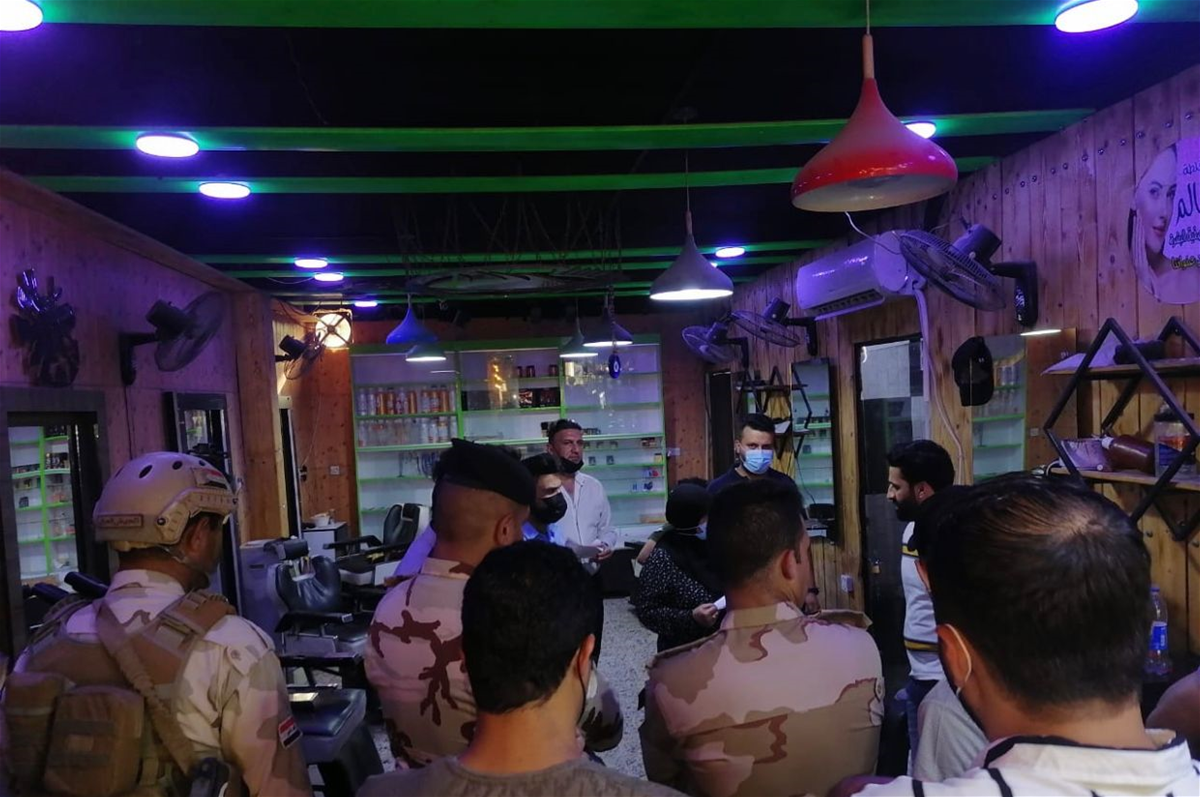 ، إن "قوة من الفرقة ١١ في الجيش العراقي بالاشتراك والتنسيق مع شعبة الرقابة الصحية تغلق عددا من المطاعم والمقاهي والافران ومحال للحلاقة مخالفة للشروط الصحية الخاصة بفيروس