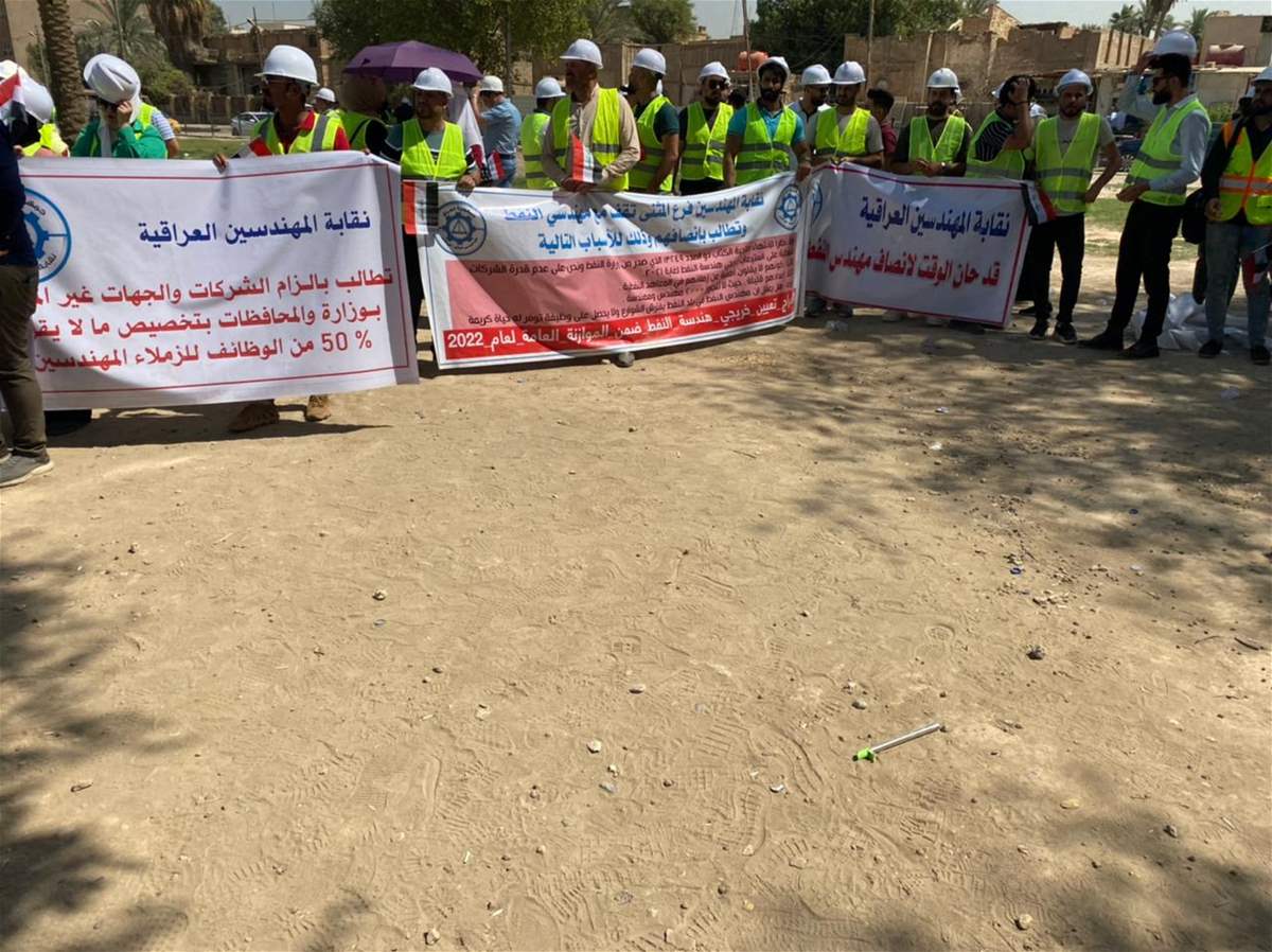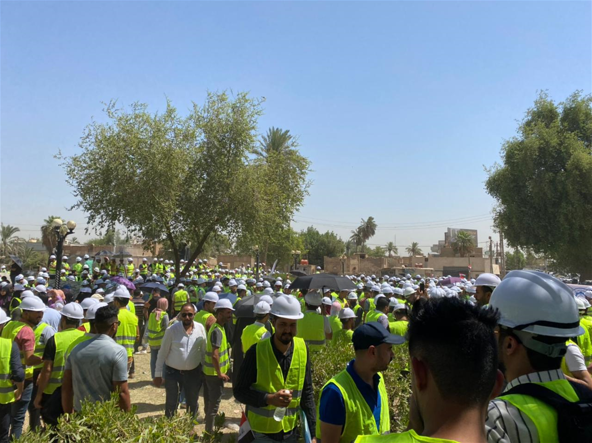 في البصرة.. وقفة احتجاجية لموظفين وعاملين في شركات (فيديو)