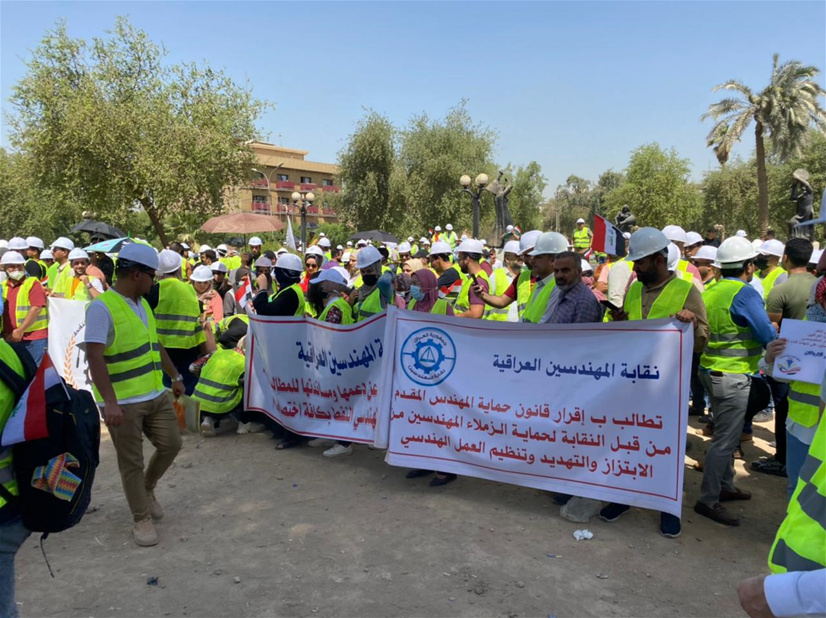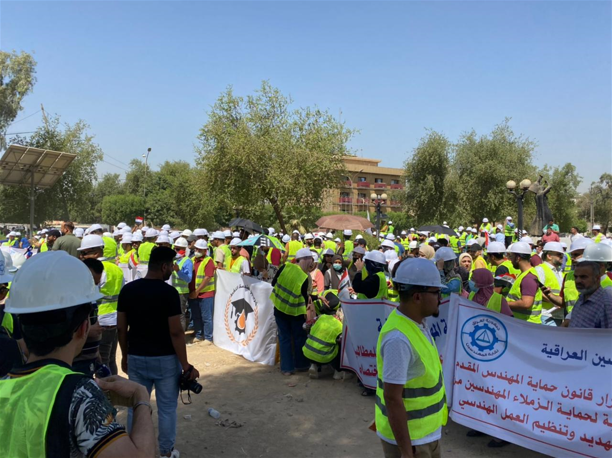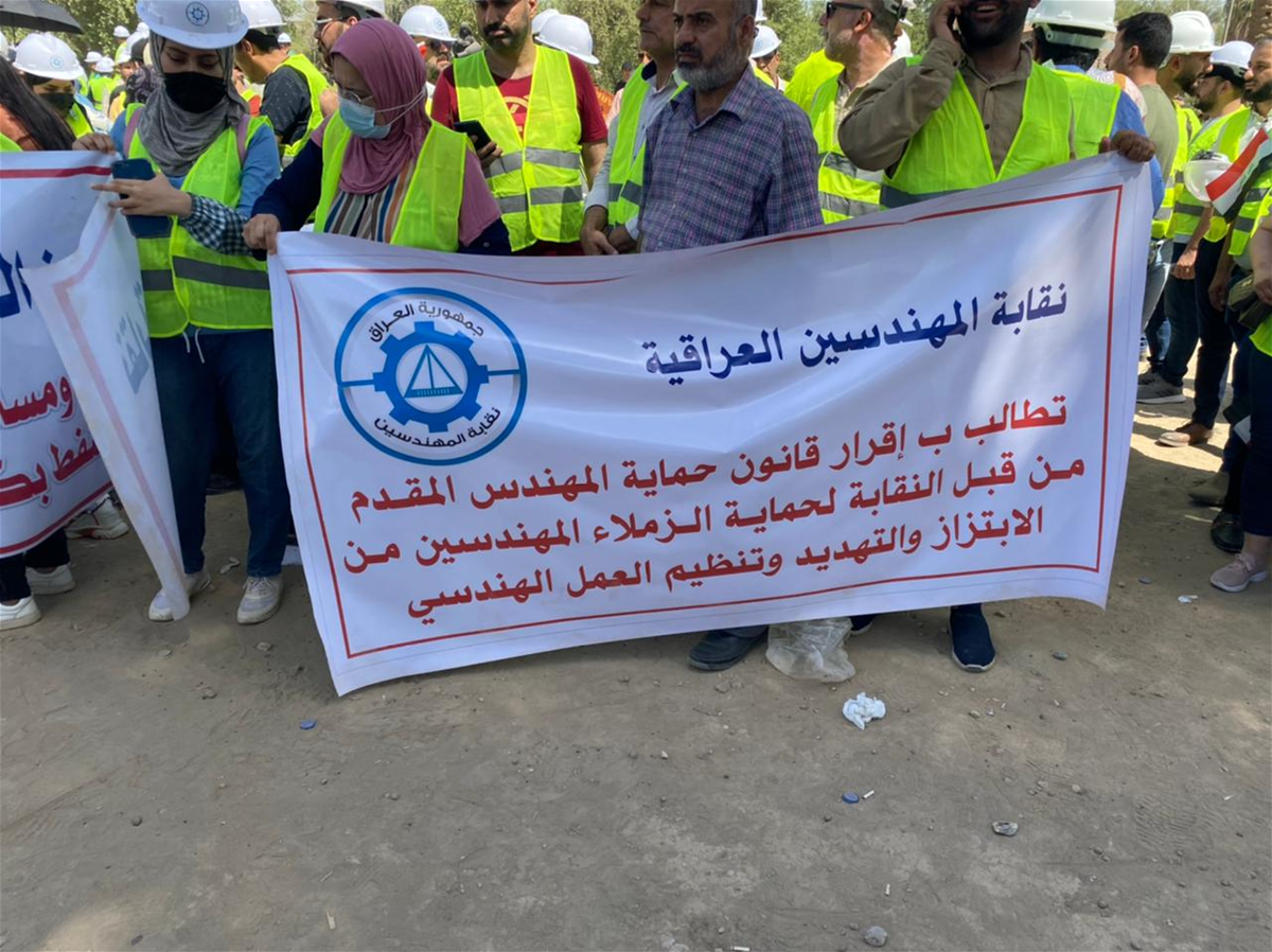 كما طالب، "باحتساب الخدمة لهندسي القطاع الخاص عند تعينهم في الوزارات لأغراض (العلاوة والترفيع والتقاعد)، وإلزام الشركات والجهات الغير مرتبطة بوزارة والمحافظات بتخصيص ما لا يقل عن 50% من الوظائف للزملاء المهندسين، ومنح المهندسين المنتمين الى النقابة قروض من