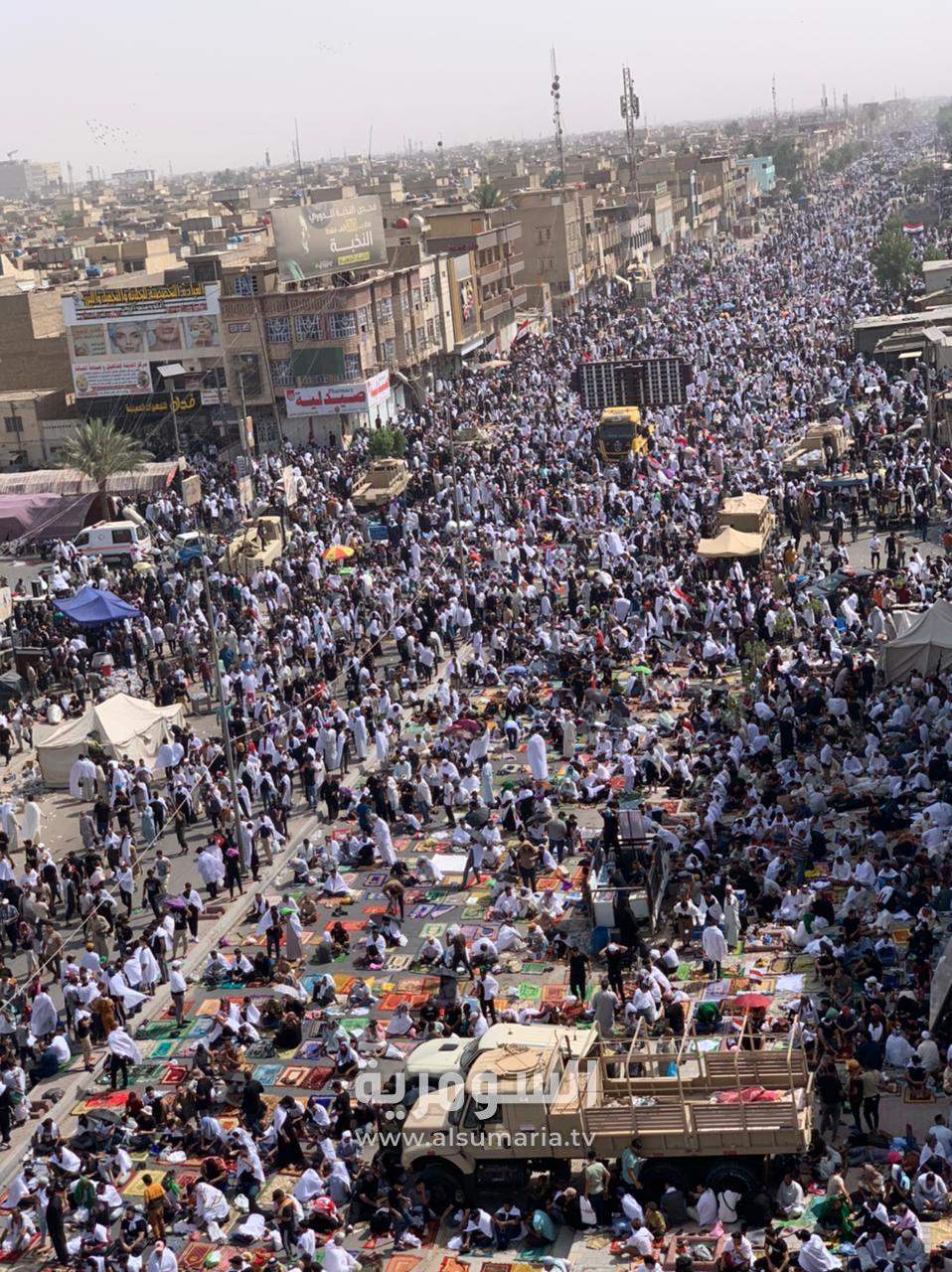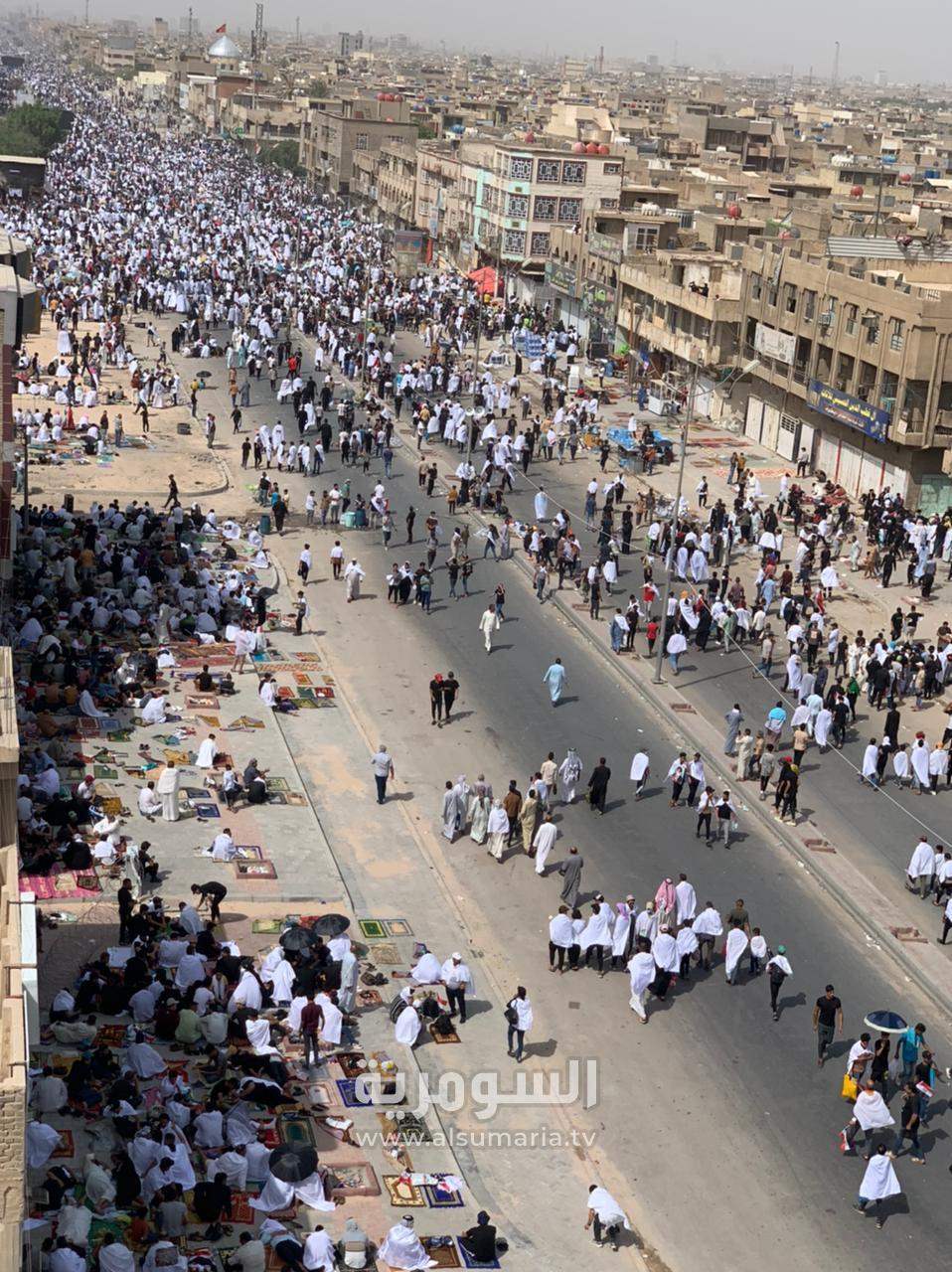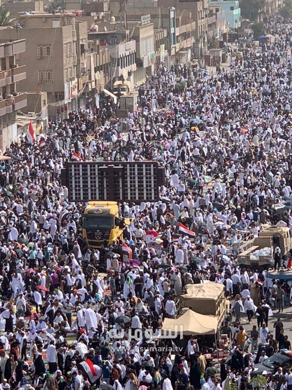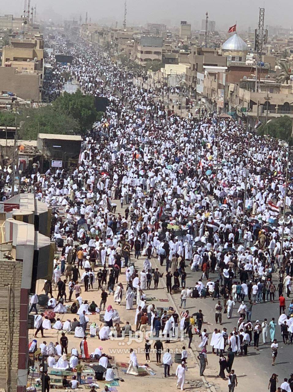 مرتدين الأكفان.. صور من الأعلى تظهر تجمع المصلين في مدينة الصدر