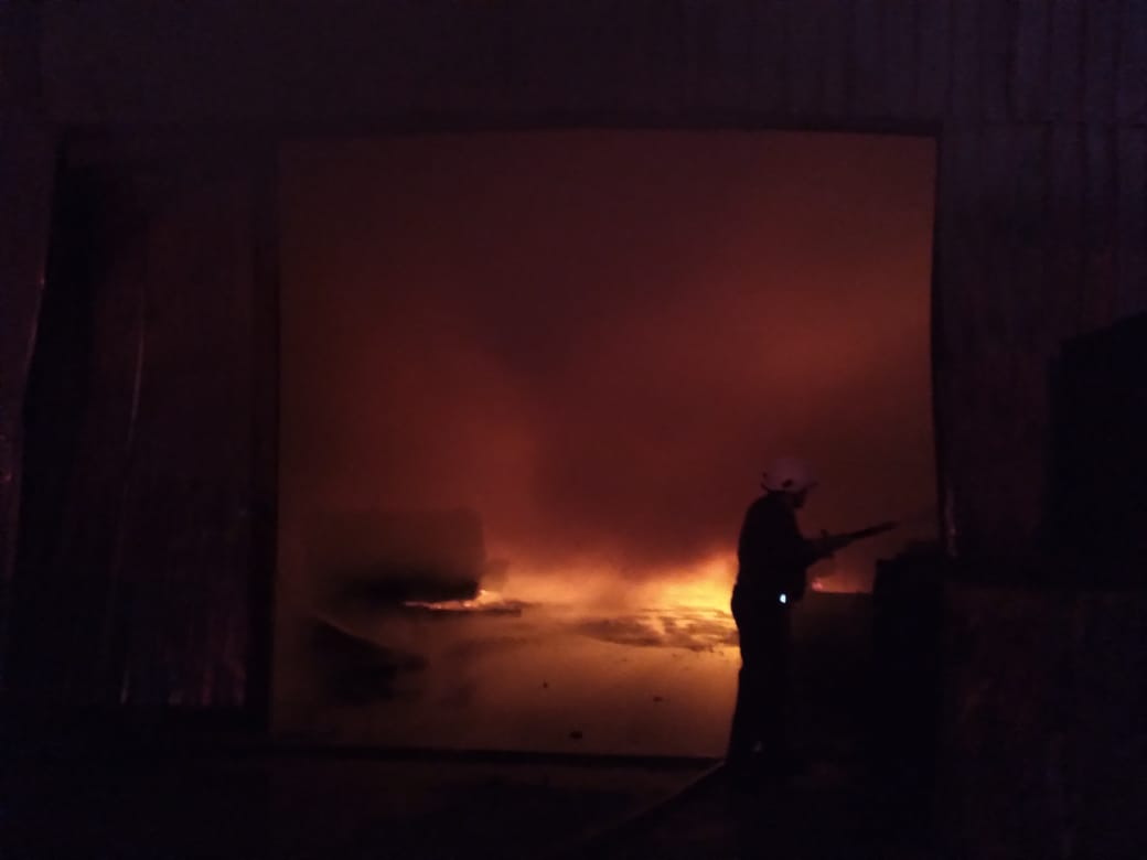 ، اليوم الاثنين، أندلاع حادث حريق داخل مخزن يحتوي على مادة الخشب واصباغ ومواد ديكور في