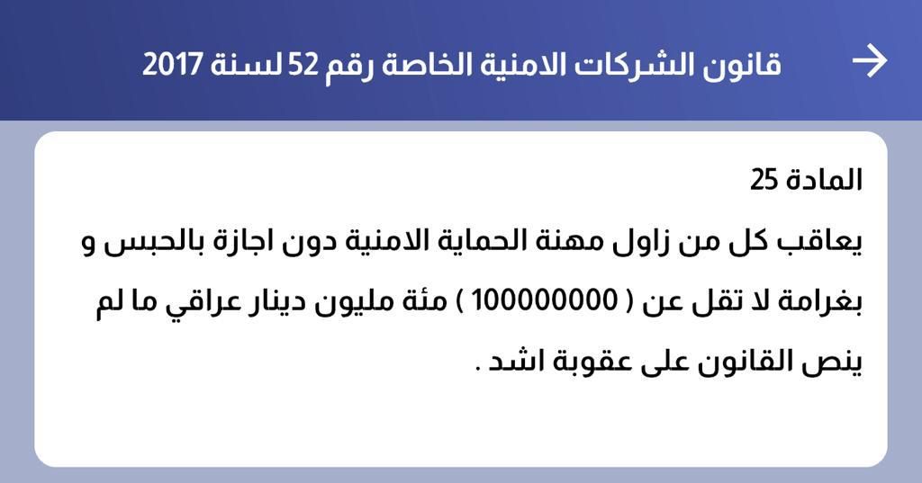 ومدير الامن فيه استنادا الى احكام المادة ٢٥ من قانون الشركات الامنية الخاصة رقم (٥٢) لسنة ٢٠١٧".