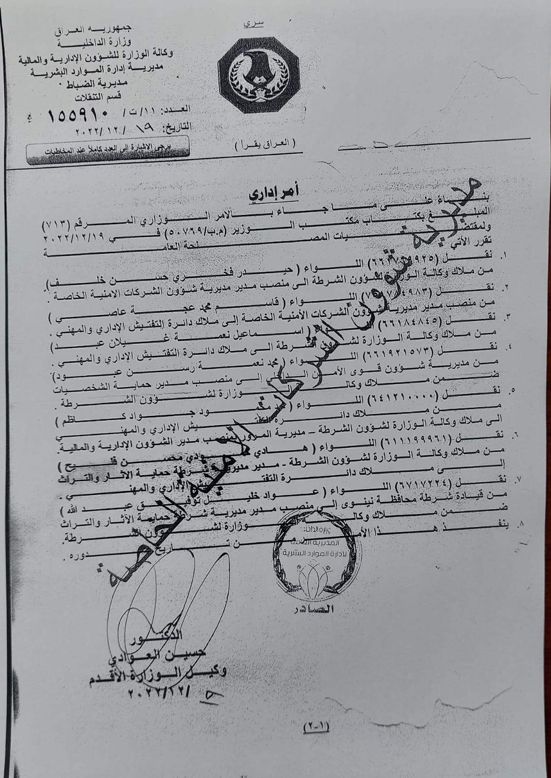 بالوثيقة.. تنقلات لضباط في وزارة الداخلية