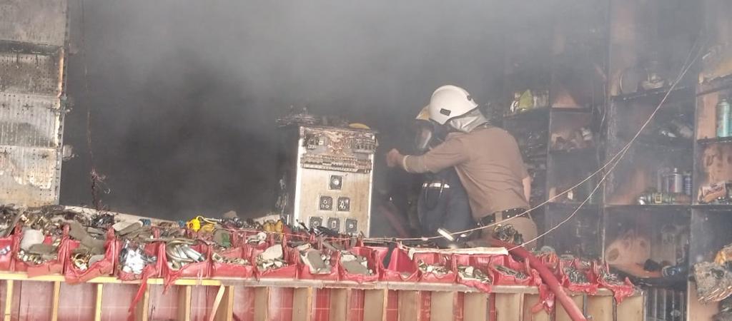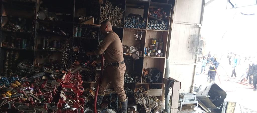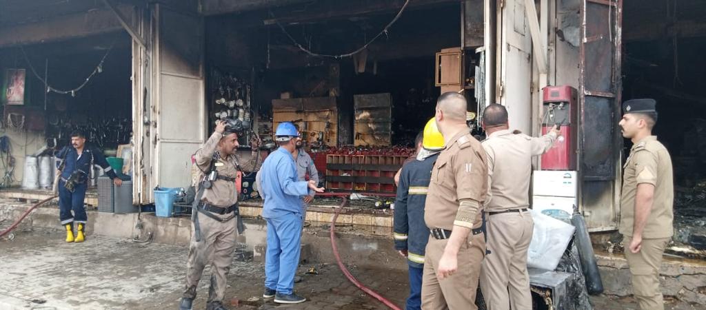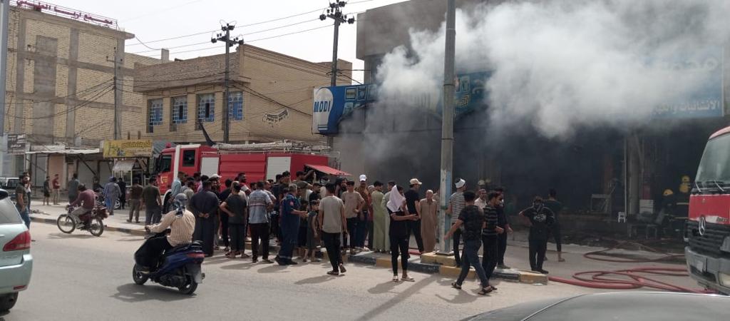 وأضاف، أن "فرق الدفاع المدني باشرت في عمليات الإطفاء للحد من انتشار الحريق الى المحلات المجاورة".