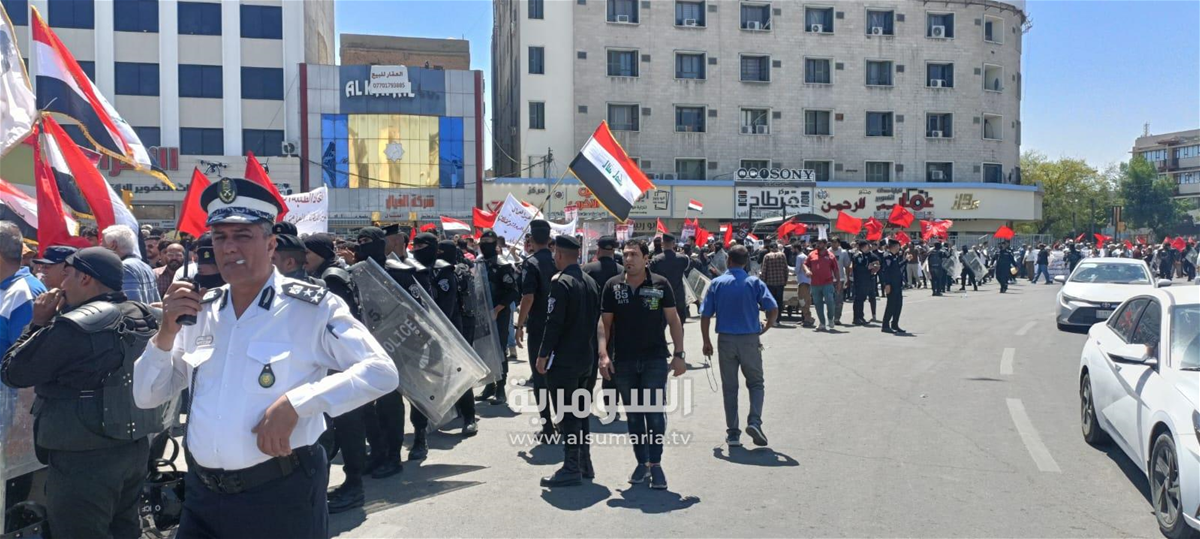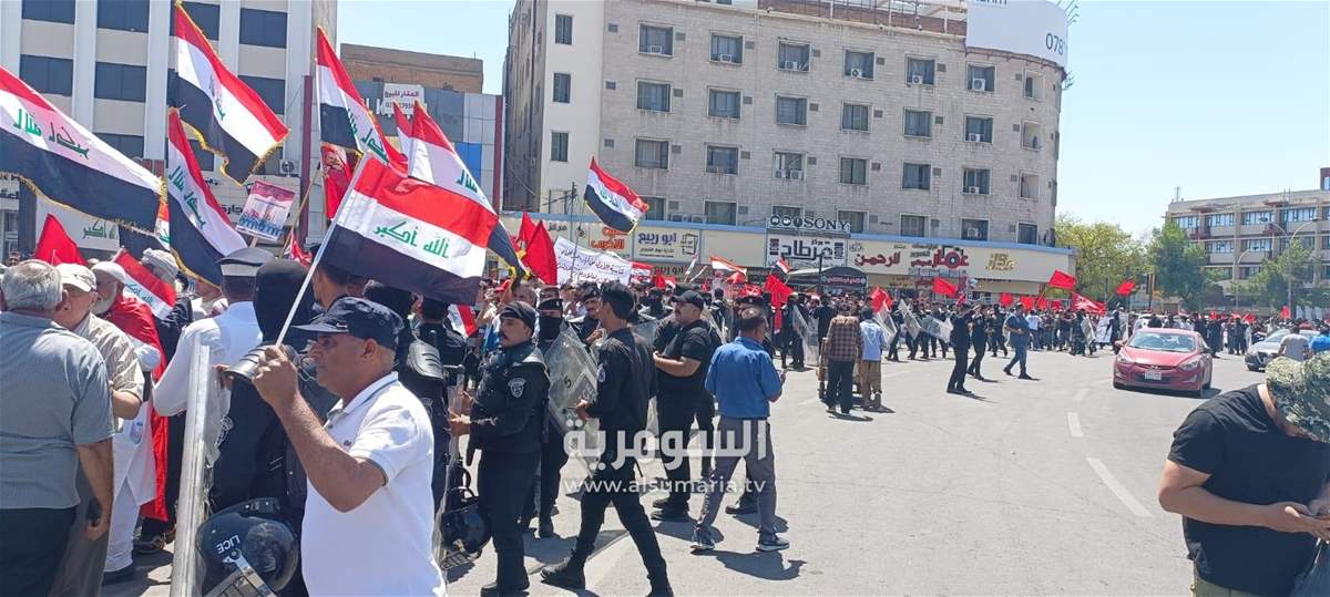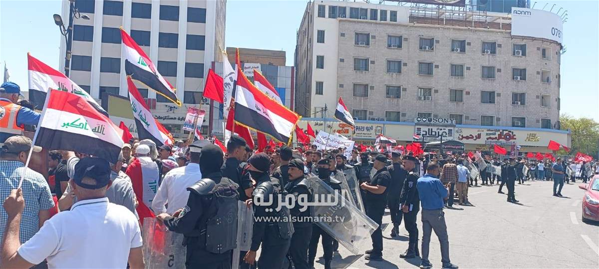 وأضاف، أن "الوقفة تزامنت مع تظاهرات الموظفين المطالبين بتعديل سلم رواتبهم، في ساحة التحرير وجسر السنك".