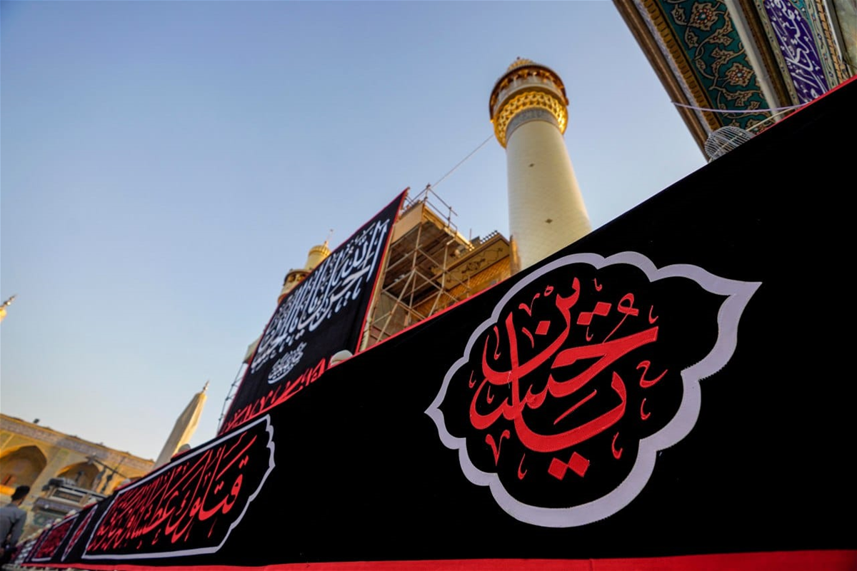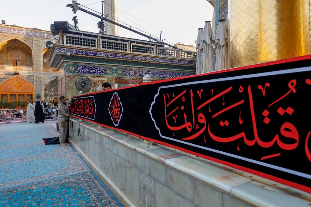 العتبة العلوية المقدسة تتشح بالسواد ايذاناً بحلول شهر محرم الحرام (صور)