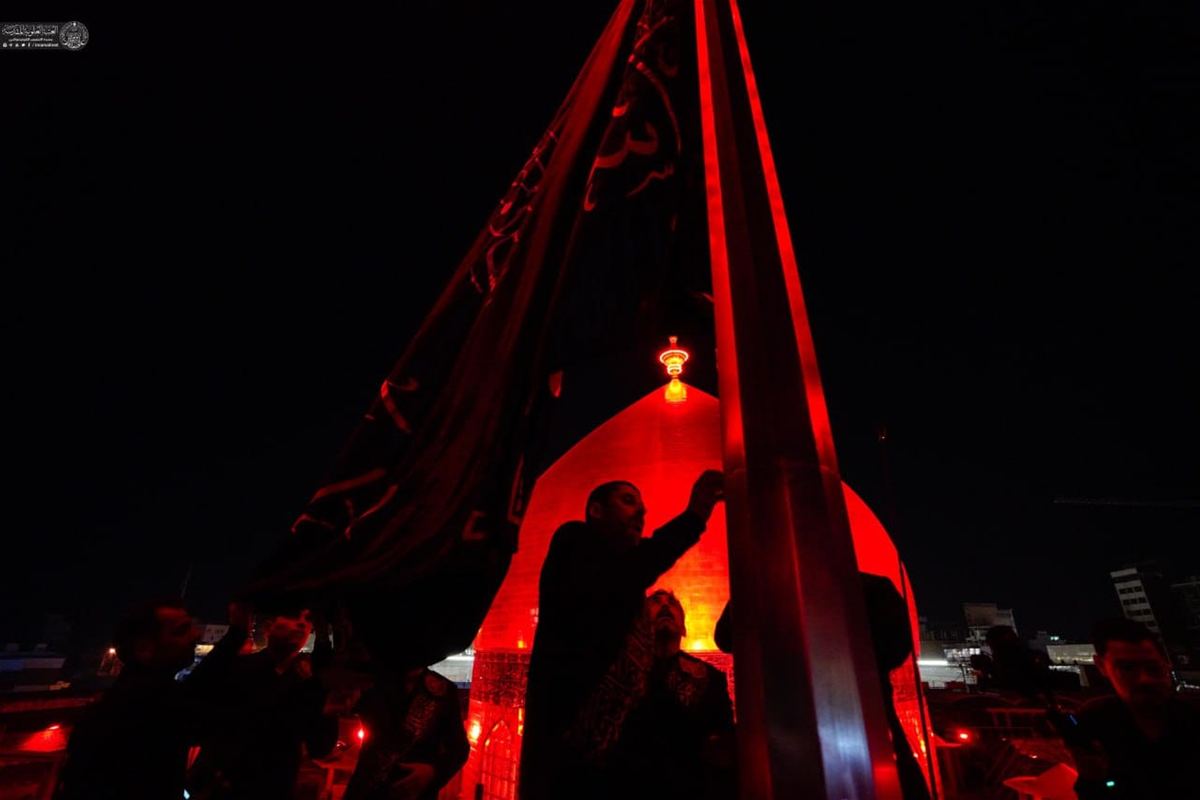 ، صوراً لمراسم استبدال الراية في مرقد الإمام علي (عليه السلام) ايذاناً بدخول شهر المحرم الحرام.