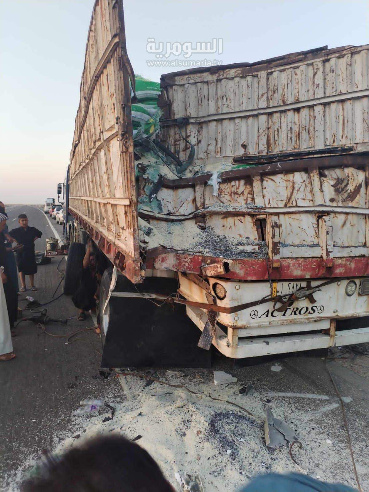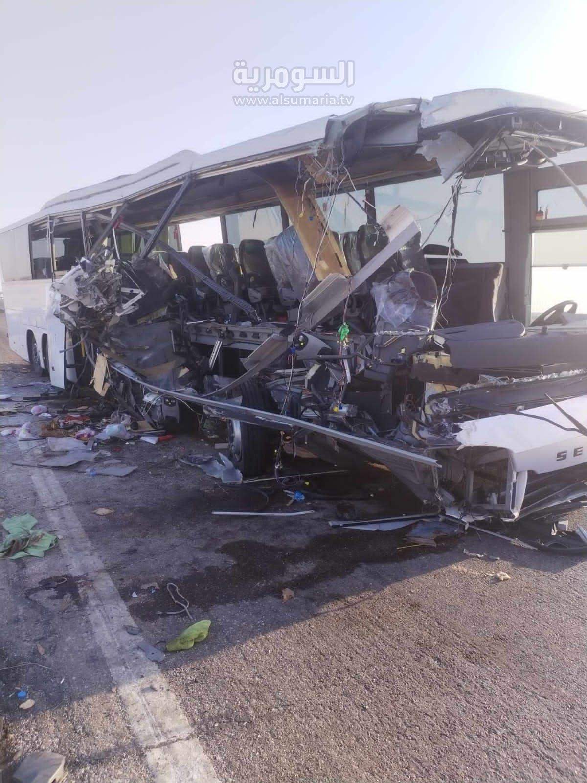 ، ان "حادث تصادم بين حافلة وسيارة حمل أخرى كبيرة على