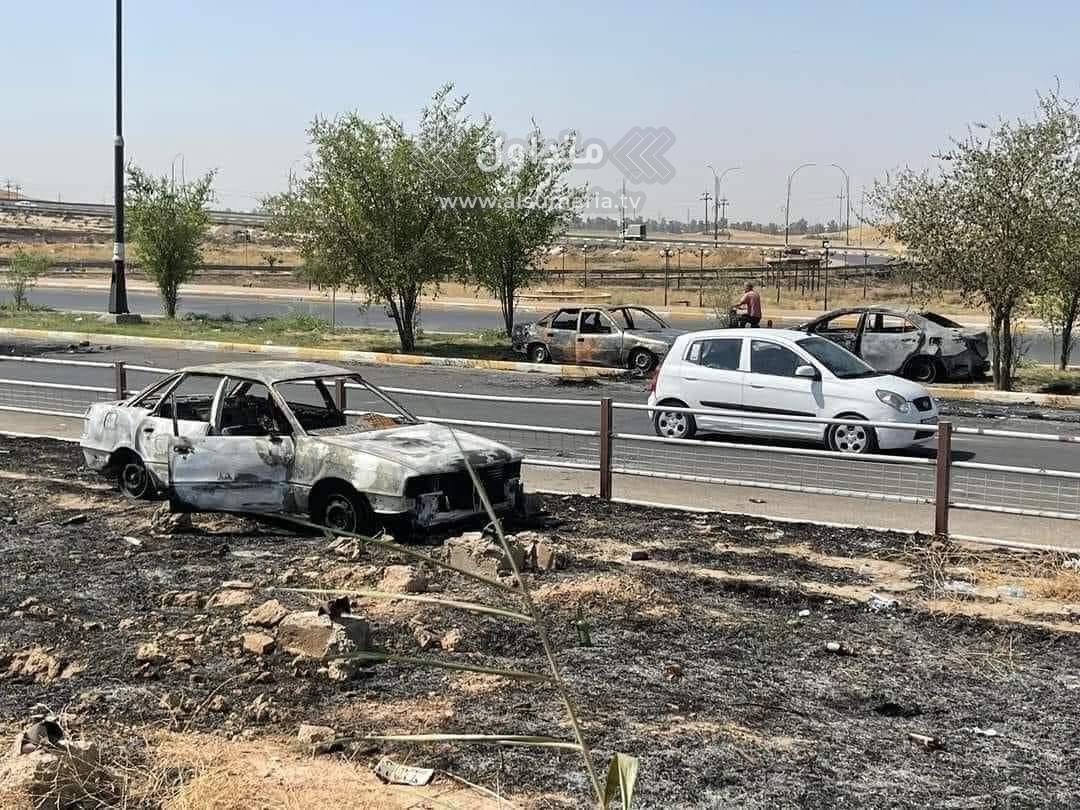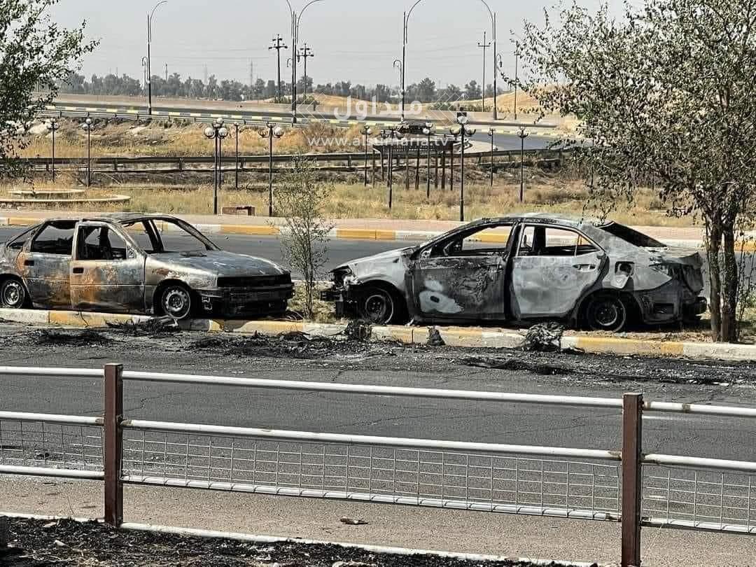 "سيارات التهمتها النيران".. مشاهد من آثار الدمار التي خلفتها أحداث كركوك
