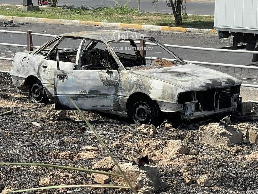ووثقت الصور، احتراق العجلات والأسفلت وجزء من