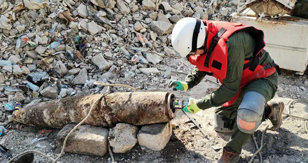 ، اليوم الاثنين، المباشرة برفع ومعالجة قنبلة طائرة زنة 500 رطل في منطقة باب جديد بمدينة
