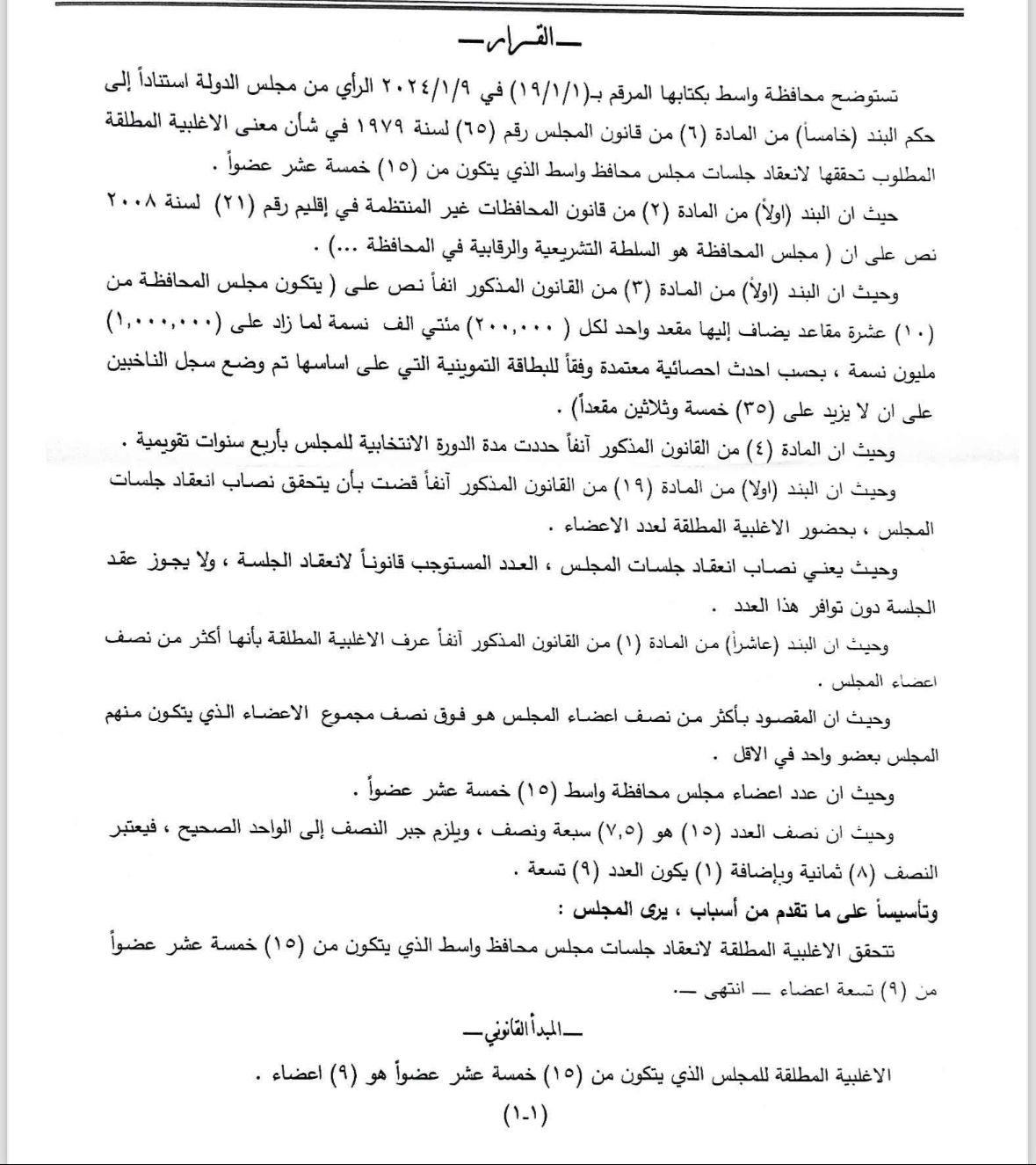 حسم آلية انعقاد جلسة مجلس محافظة واسط