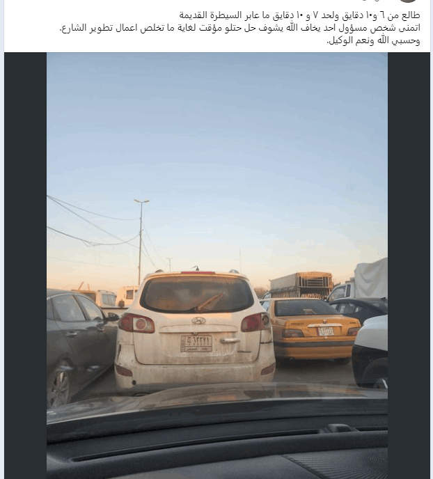 لحين انتهاء الازدحام الذي يمتد على طول الطريق لغاية دخول بغداد وسريع