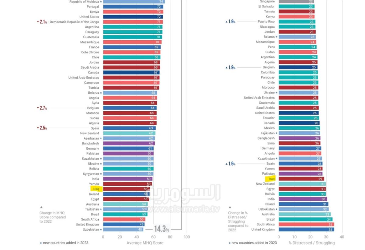 الصحة النفسية وترتيب البلدان "الاكثر تعاسة" في 2023.. مفارقات مثيرة ونتائج مقلقة عن العراق