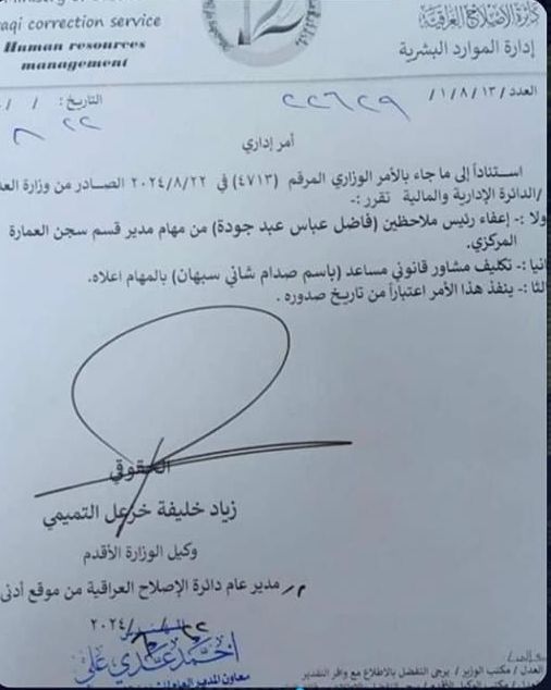 إعفاء مدير سجن العمارة المركزي (وثيقة)