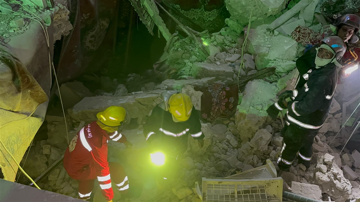 ، ان "فرق الدفاع المدني تمكنت من إنقاذ خمسة أشخاص، بينهم امرأة ورجل مسن، بالإضافة إلى ثلاثة آخرين، إثر حادث انهيار مبنى سكني قديم يقع في