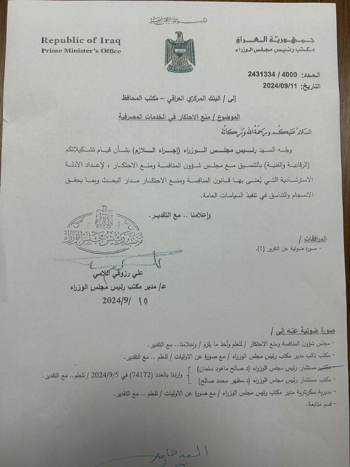 ، توجيها لمنع الاحتكار وتحقيق المنافسة العادلة في القطاع المصرفي.