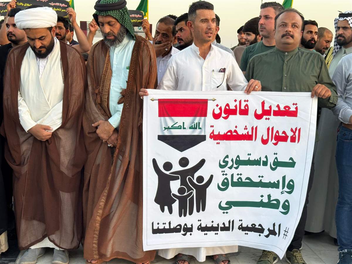 ، اليوم الجمعة، بوقفة مؤيدة للمضي بتعديل قانون الأحوال الشخصية، بينهم رجال دين وشيوخ عشائر ونساء.