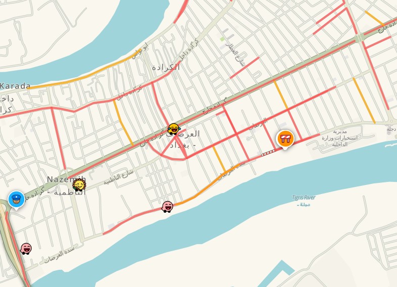 وتقاطع الناظمية والعرصات من جهة أخرى، وذلك بعد ان أقدمت الجهات المشرفة على قطع نزلة شارع الناظمية، وكذلك قطع شارع السدة المتجه نحو قرية دجلة، مما تسبب بحصر العجلات وتكدسها في الازقة والشوارع في محاولة للذهاب نحو شارع العرصات دون جدوى.