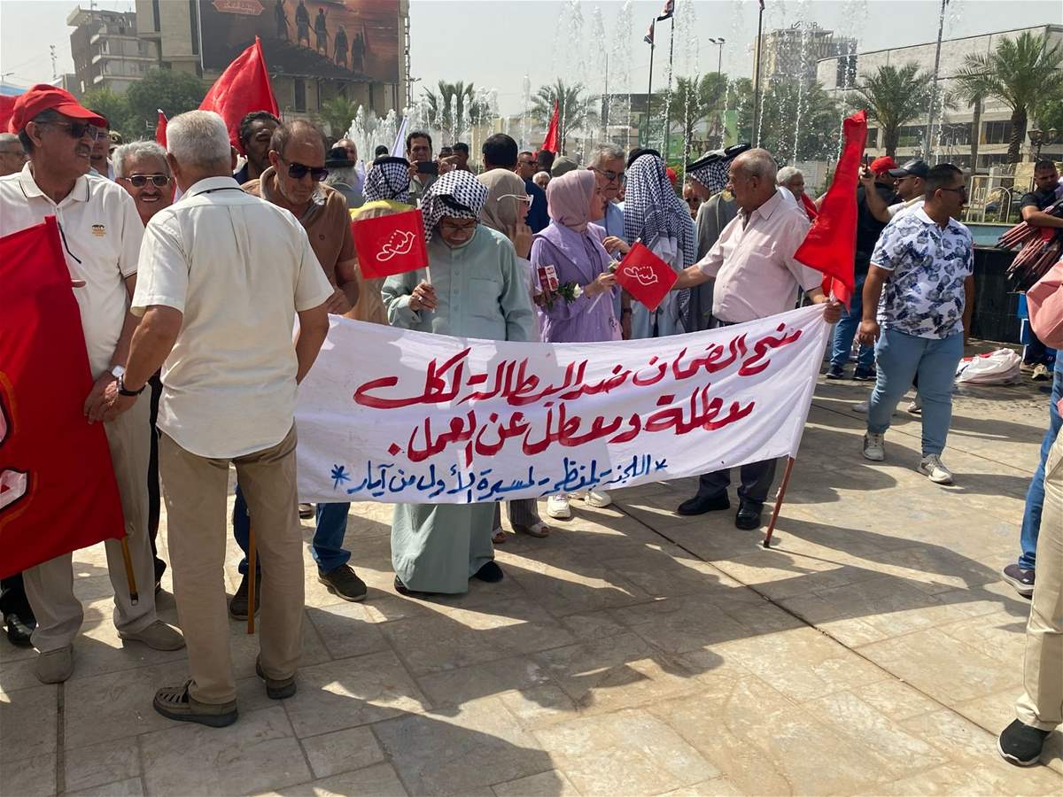 بيافطات مثقلة بالمطالب.. انطلاق مسيرة لتظاهرة عمالية في بغداد (صور)