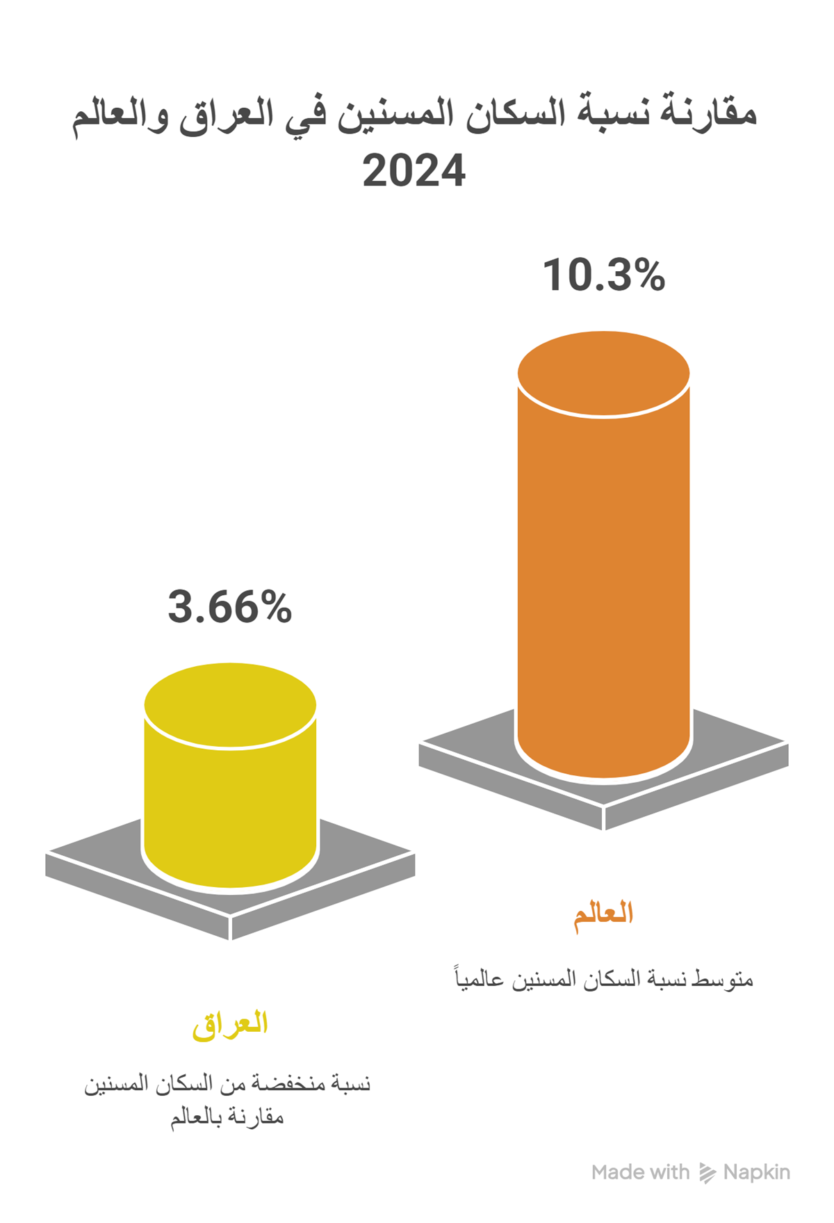 ورغم أن هذه النسبة تعد منخفضة مقارنة بالمعدل العالمي (10.3%)، إلا أن التحديات التي يواجهها المسنون العراقيون تفوق ما قد يواجهه نظراؤهم في دول أخرى.
