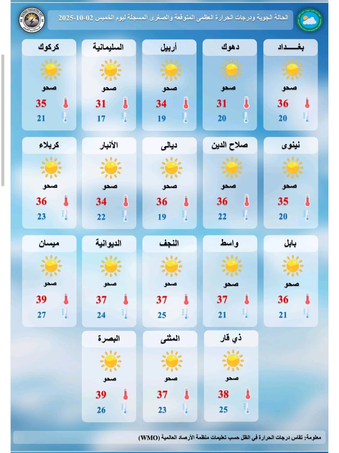 طقس العراق.. الأنواء تؤشر ارتفاعا في درجات الحرارة