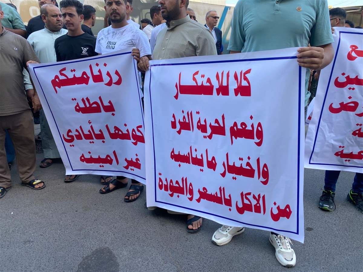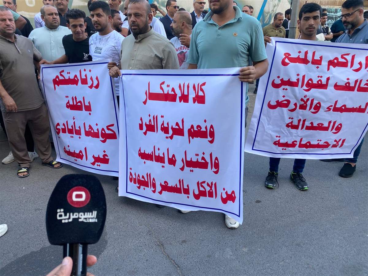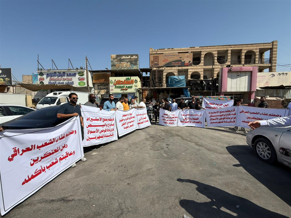 ، إن العشرات من التجار والعاملين في سوق الدجاج المستورد تظاهروا اليوم أمام مبنى