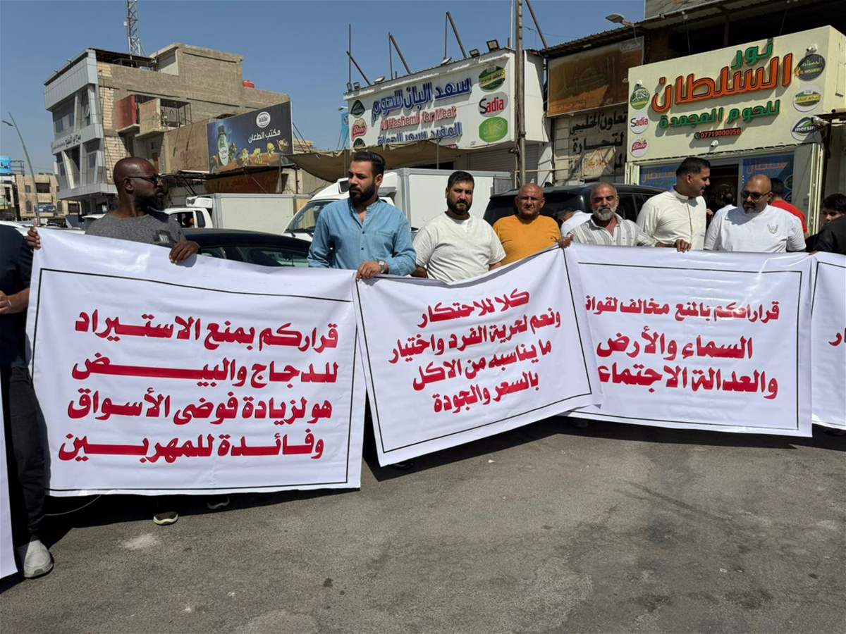 احتجاجا على قرار منع استيراد الدجاج، والدجاج المقطع وملحقاته.