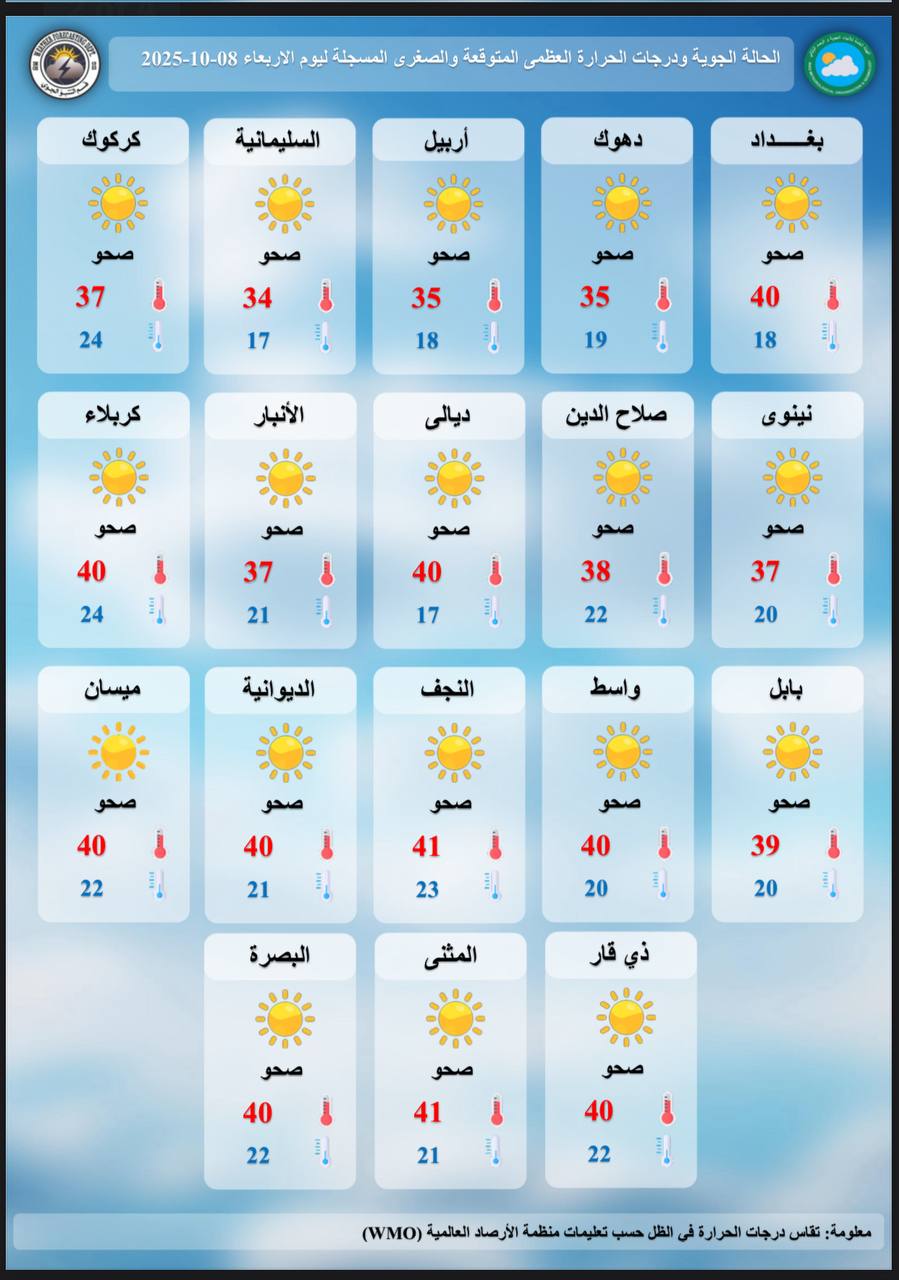طقس العراق.. الأنواء تؤشر ارتفاعا في درجات الحرارة