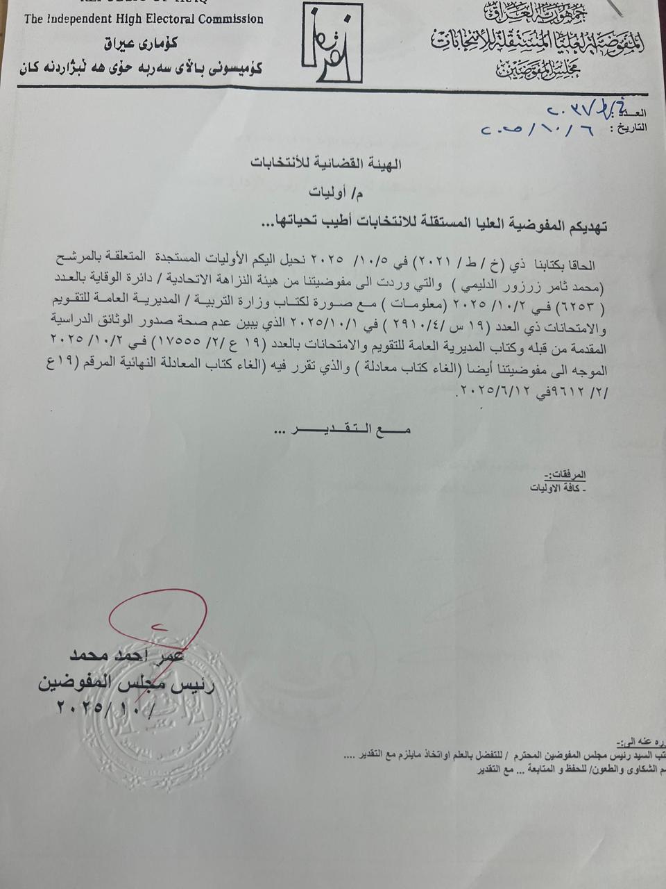 كتابان يثبتان تزوير مرشح أحدهما يختفي بيد المعتمد واخر ينفقد داخل المفوضية